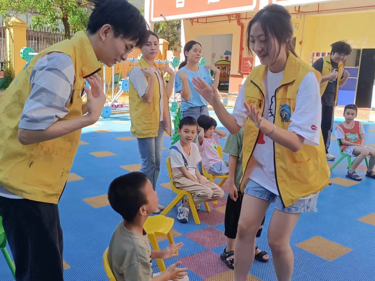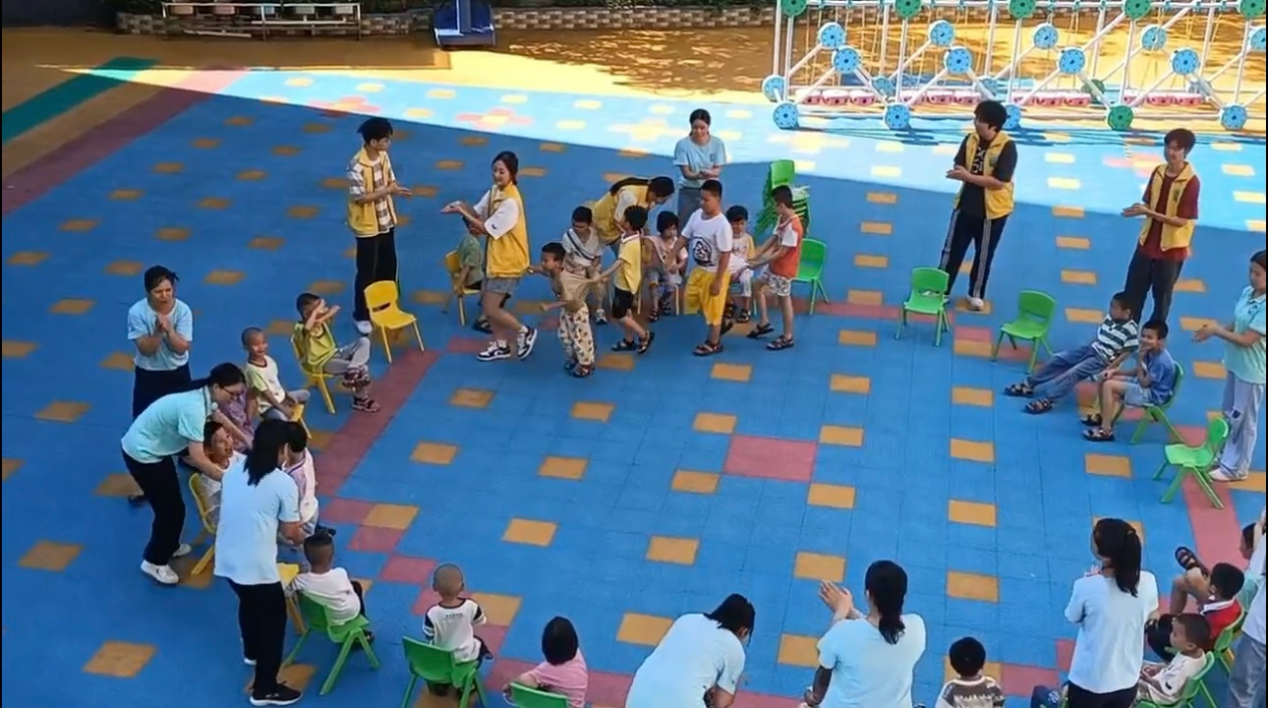 “星光筑梦”支教团在广东省肇庆市怀集县蓝海豚特教中心开展关于针对自闭症儿童的音乐疗法的调研实践活动。支教团通过“游戏教学”的模式,引导自闭症儿童提升注意力,向老师和同学打开自己的心扉,分享自己的感受,从而增强自身面向社会,拥抱人生的自信。