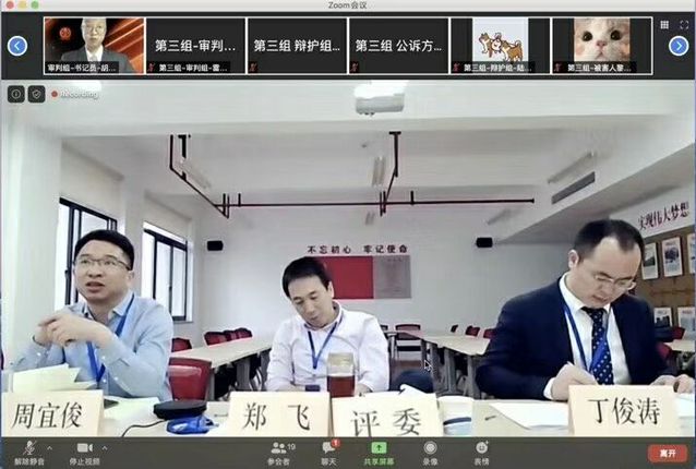 下午3时,我校硕士研究生曹昆仑、易潇、雷嘉悦、胡玉洁组成的审判组进入Zoom会议室参与比赛。在庭审中,比赛双方于辩题所确定的事实基础上进行法律辩论,模拟审判程序,经过开庭阶段的活动程序、法庭调查、法庭辩论、公诉方与辩护方最后陈述、评议和宣判,完成比赛。下午5时,现场结算分数、评委点评。比赛结束,我校研究生组获得“最具人气奖”与“优胜奖”,文书奖项尚未颁布。