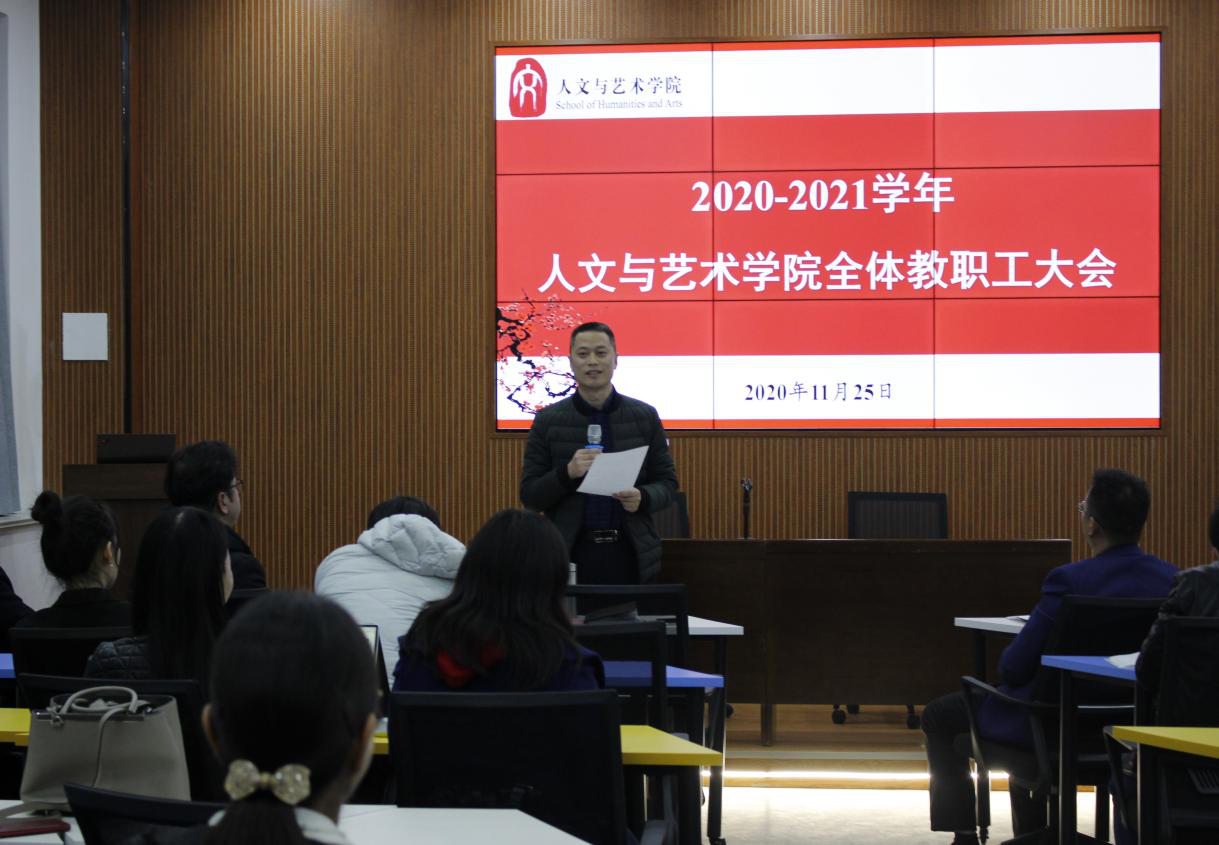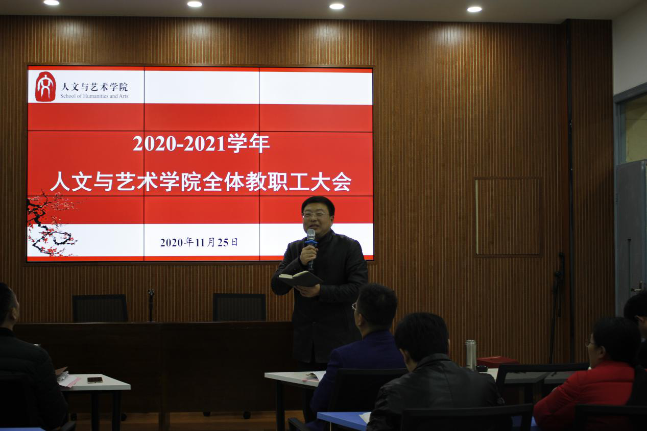 安全工作、教师财务报账事项进行了讲解;科研副院长汤道路就国家社科基金申报工作进行了动员,对学校近期推出的融合门户科研创新服务平台的使用进行了简要说明,对开展首届研究生学术论坛作了部署;教学副院长刘振对有效开展年底教学工作、编制2020版培养方案、教材建设、课程教学质量标准等进行了部署动员。