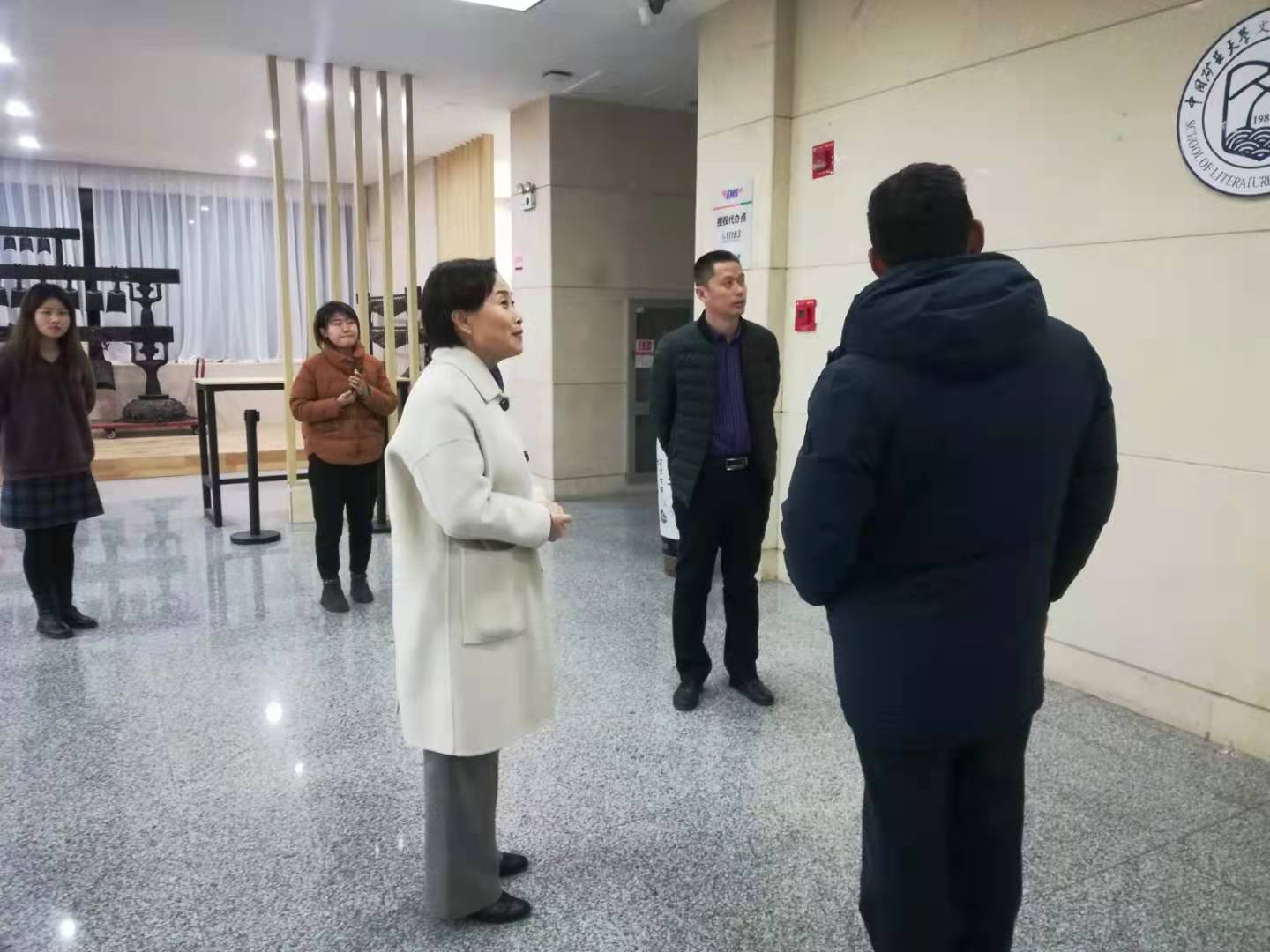 和美术系负责人有关展览筹备、布展期间的情况介绍,对学校相关部门协同举办这次展览给予充分肯定,期盼更多的师生主动接受艺术的熏陶;同时,她要求美术系师生努力创作更多更好的艺术作品,推动校园文化建设与人文氛围营造。