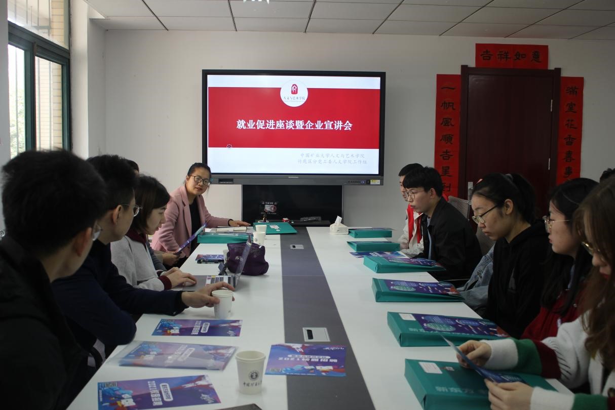 召开就业促进座谈暨企业宣讲会,本次会议邀请到新东方教育机构、学而思教育机构的宣讲老师,党委副书记丁恒星老师及广电专业何双秋老师出席,2017级辅导员李玉雪老师主持本次会议,毕业学生积极参与此次会议。