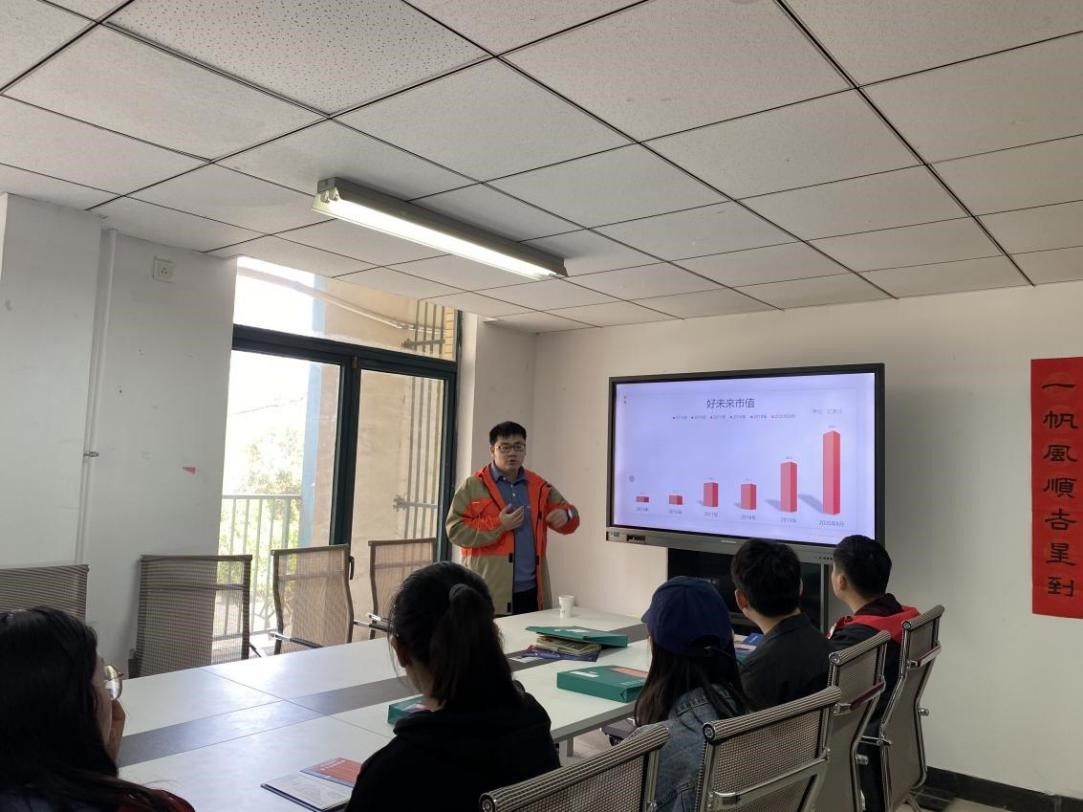 会议伊始,李玉雪老师强调当前考研及就业形势的严峻性,鼓励大家积极参与就业招聘会,提升个人能力素养。首先,由新东方徐州学校优能中学部教学经理胡平向大家介绍新东方教育机构的集团概况、人才优势、地区分布等内容,详细说明了入职后的福利待遇及个人发展前景,解答了大家最为关心的问题。接着新东方徐州学校三胞校区中学店长陈效宇介绍了入职经历及自身发展的情况,他作为矿大优秀毕业学子也深知同学们心中所虑,在轻松的氛围中与大家交流。新东方徐州学校优能中学部总监马冲与新东方徐州学校人力资源部总监李晓刚也回答了同学们关于如何面试等问题。何双秋老师作为专业教师也鼓励同学们积极参与到实习工作中,强调只有在实践中才能锻炼能力、增长见闻。