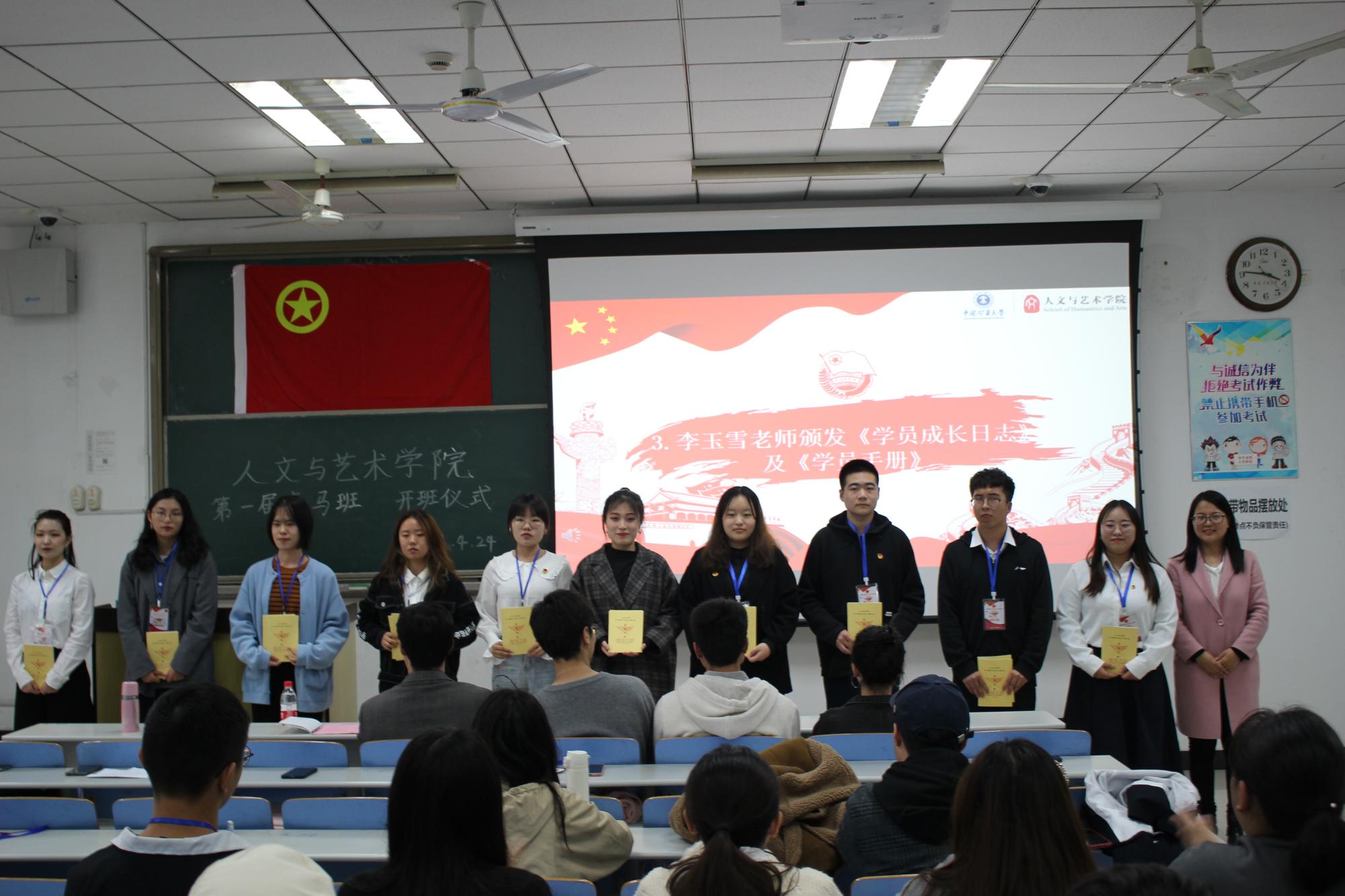 会议伊始,郭丽婉老师对全体入选青马班的学员表示祝贺,全体与会成员合唱国歌。接着,郭老师介绍青马班培训工作安排,指出青马班旨在为国家培育一批以马克思主义为指导的青年骨干。接下来,郭老师宣读青马班学员名单,并由李玉雪老师为学员们颁发《学员成长日志》以及《学员手册》。