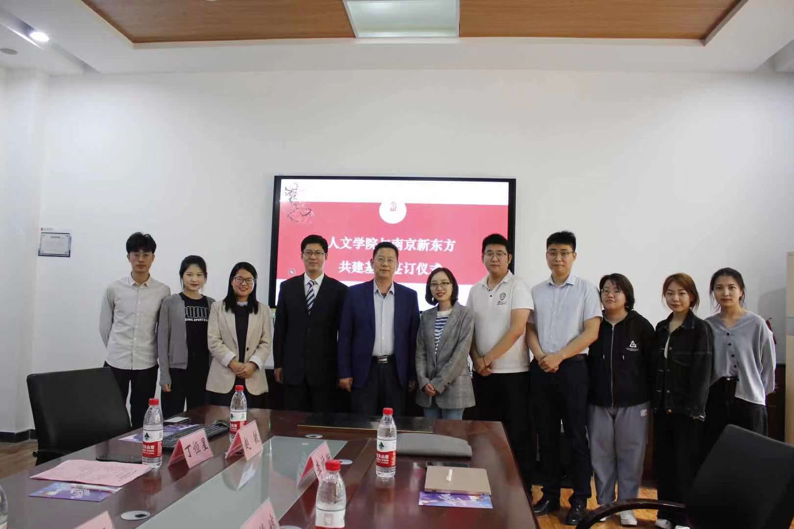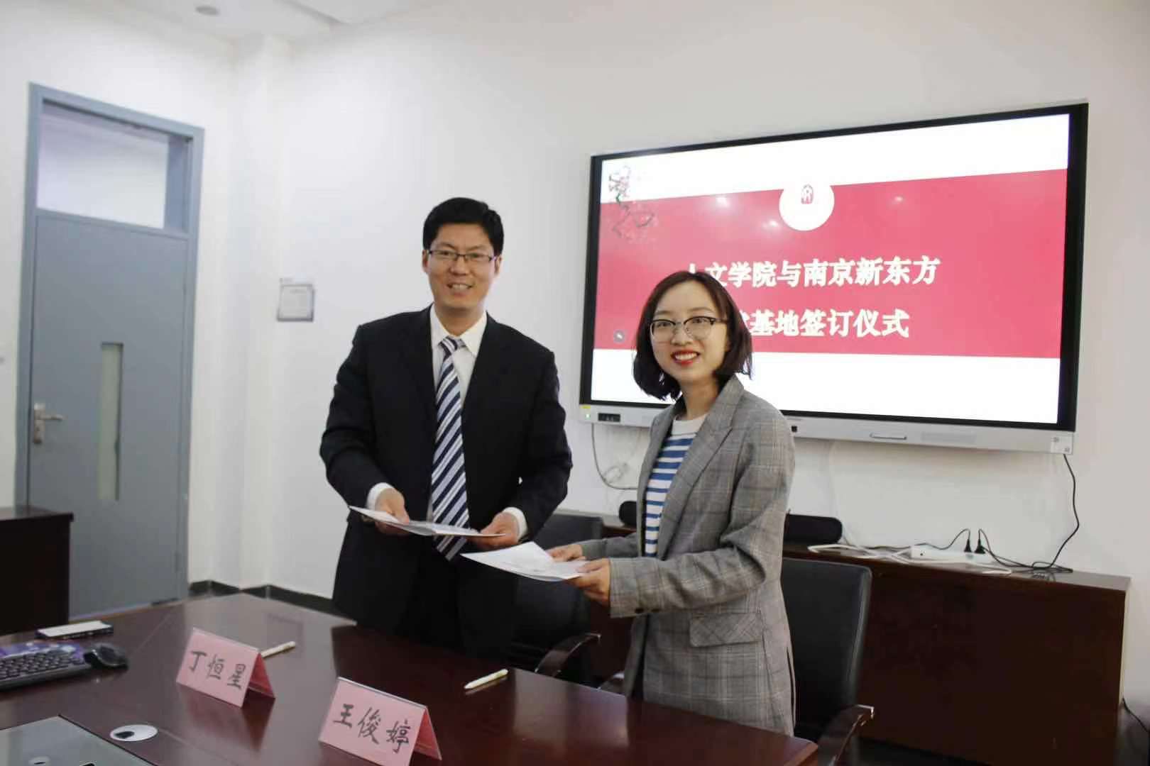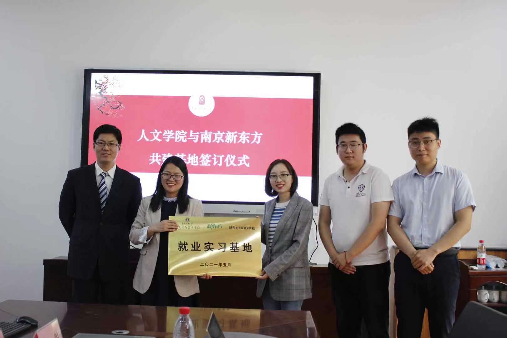 与新东方(南京)学校共建实习实践基地协议,并由李玉雪老师为新东方(南京)学校进行“就业实习基地”授牌。
