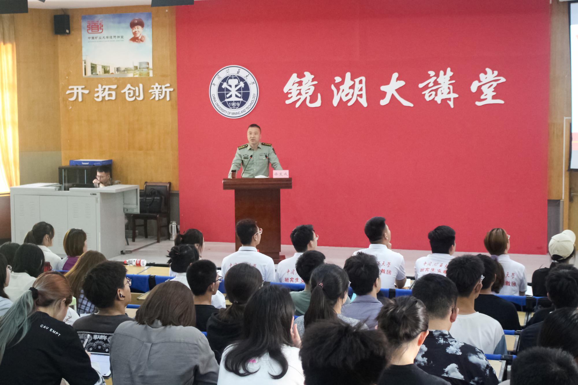 徐发成处长以一段展示军队风采的视频引出此次讲座的主题。随后,他结合相关文献、视频资料讲述了中国共产党领导下的革命先锋和仁人志士为新中国成立和建设做出了艰苦卓绝的斗争,使同学们更加深刻地认识到眼前幸福生活的来之不易,应倍加珍惜。徐处长着眼国际形势,从不同方面论述了新时代青年肩上责任之重大,告诫同学们要努力学习,传承发扬特别能吃苦、特别能战斗的光荣传统和优良作风。最后,徐处长结合自身工作经验进行总结并分享了自己的感悟:“青年人要做到‘尽、敬、进’。尽,即尽忠,对党和国家尽忠,忠于祖国,忠于人民,学习革命先烈,不忘国家;敬,孝敬父母,敬畏法律;进,即进取,树立远大理想,坚持不懈的奋斗。”