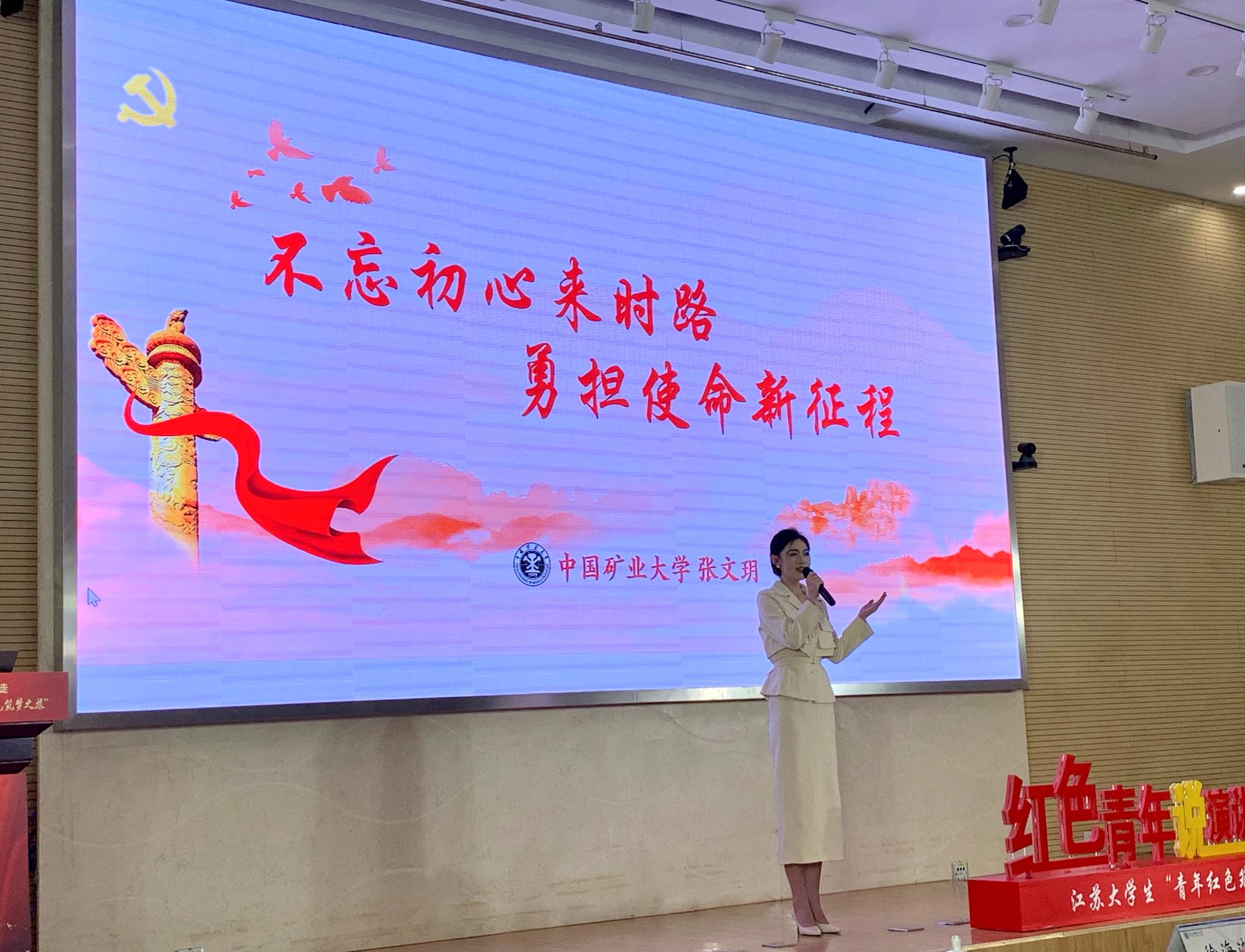 法学2017级本科生张文玥作为中国矿业大学学生代表参加此次活动,并在“红色青年说演讲比赛”项目中发表了题为“不忘初心来时路,勇担使命新征程”的主题演讲。