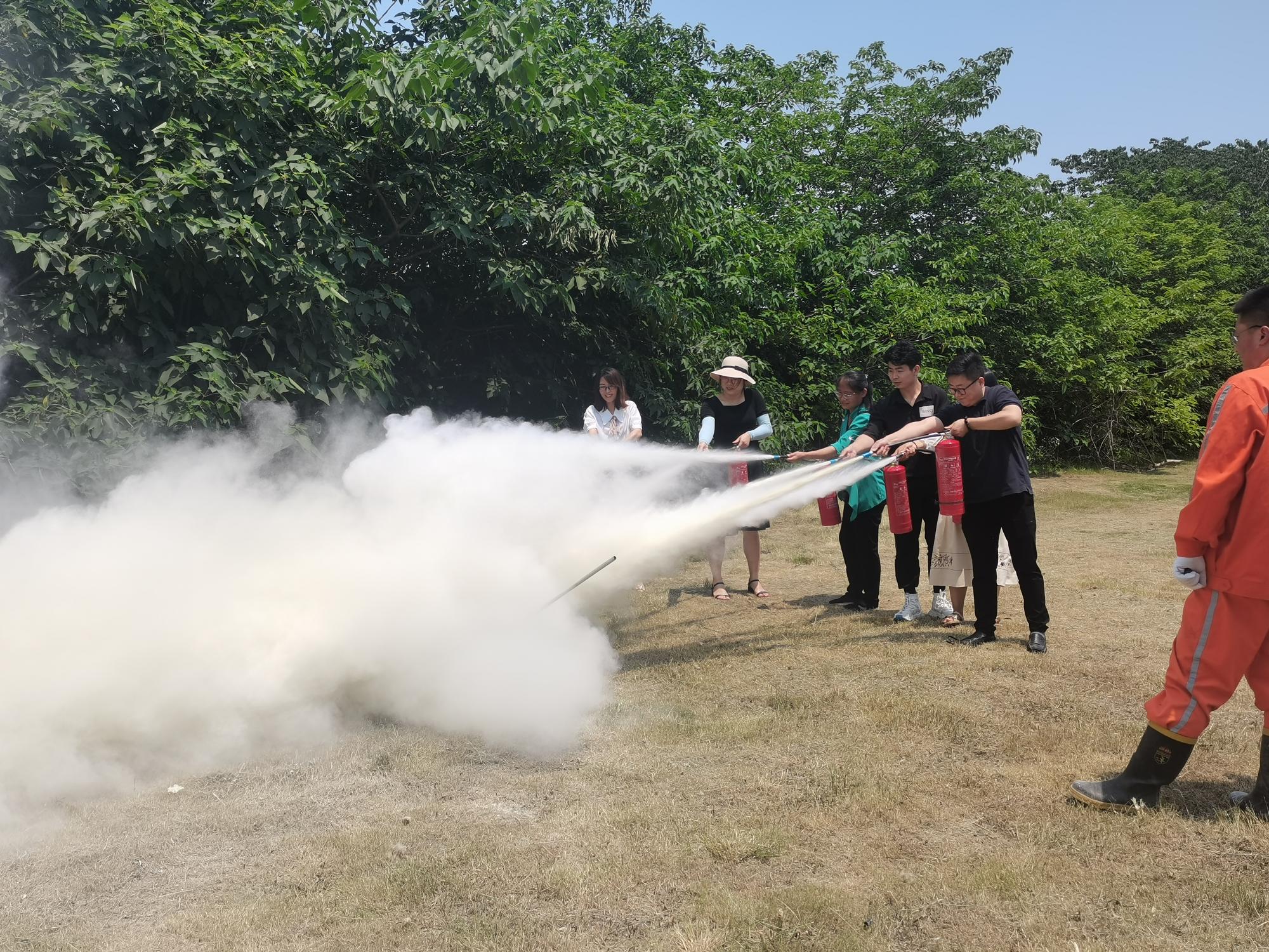 楼。紧接着,负责安全教育的老师对师生疏散情况进行简要总结并且带领各位领导和同学们移步体育馆进行灭火器的使用演练。在专业人员的指导下,老师和同学们共同学习了干粉灭火器的操作步骤,并进行了用干粉灭火器熄灭火堆的消防实操演练。