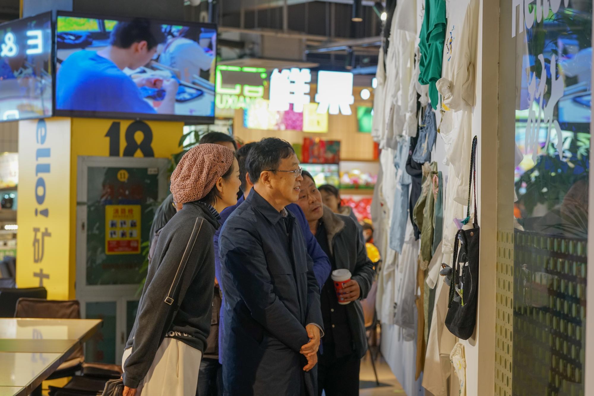 美术系马平副教授策划与开发的美育劳育课程——女红技艺训练与创新课程习作展“穿针引线亦飞花”在南湖校区U1818青创讲堂开幕。副校长曹德欣、人文必发
