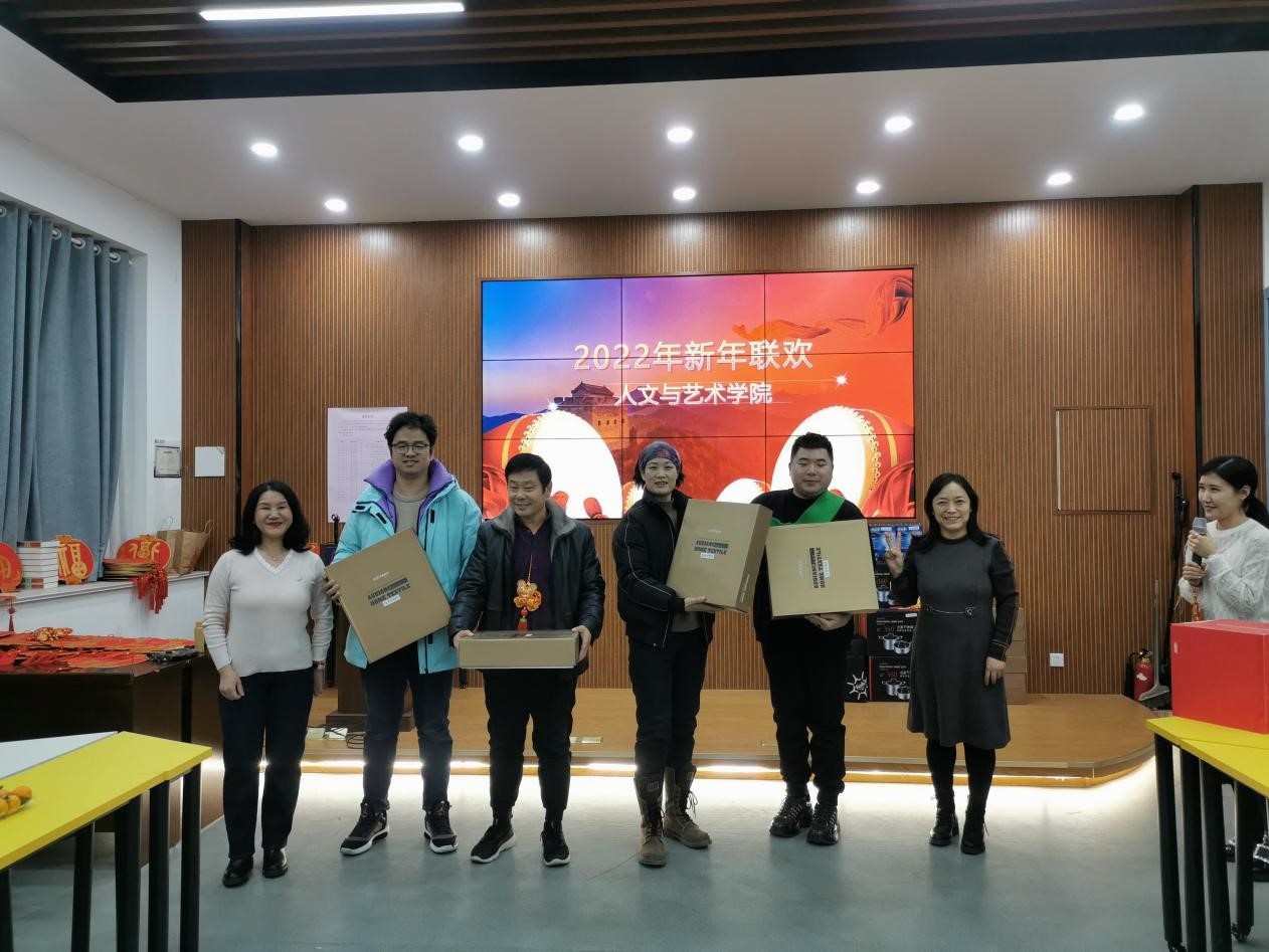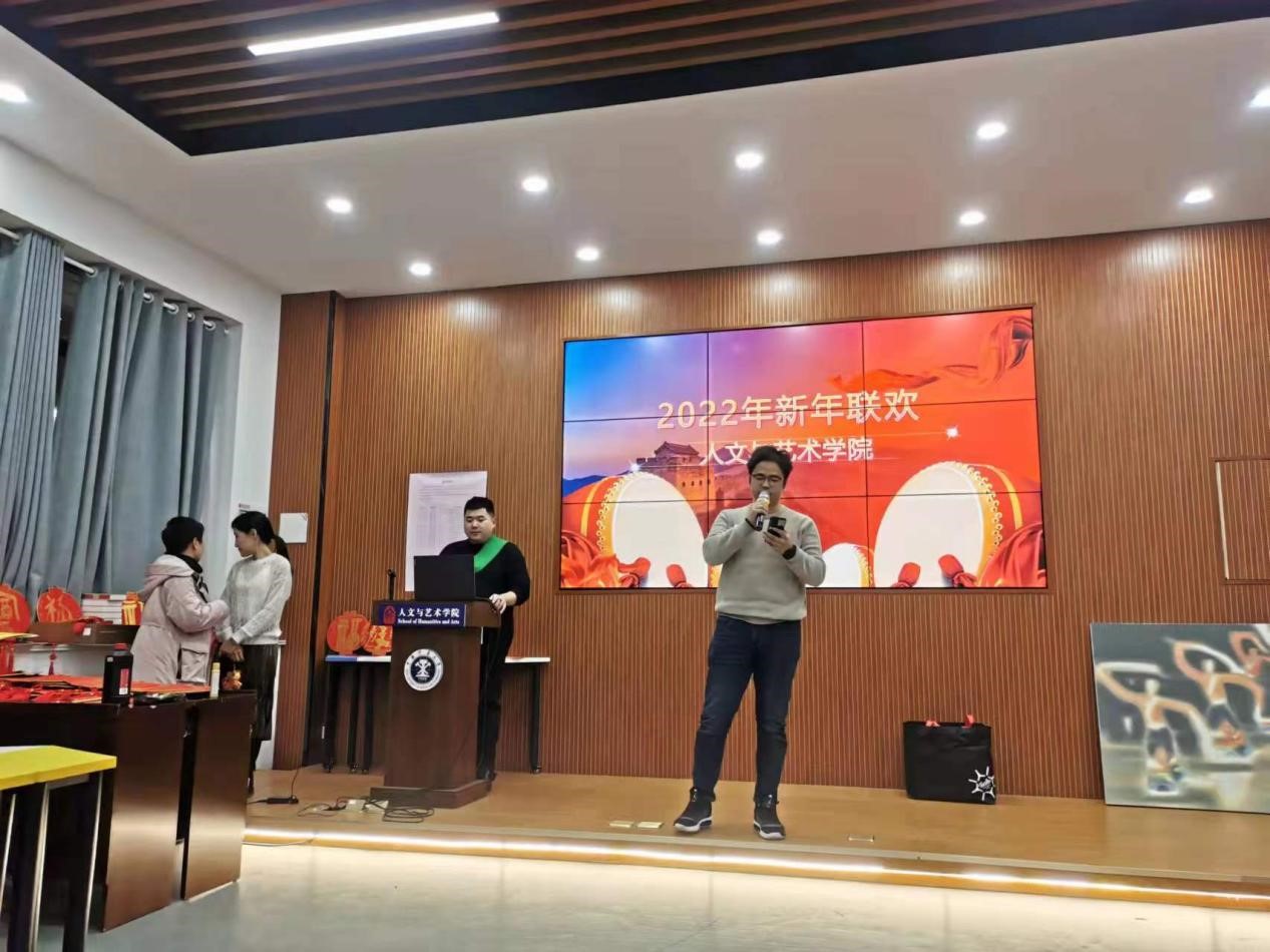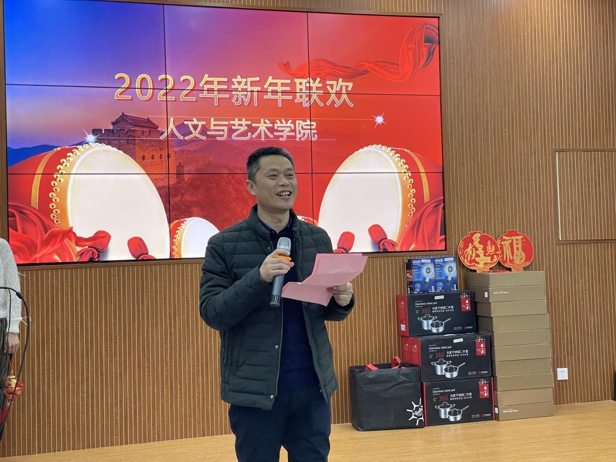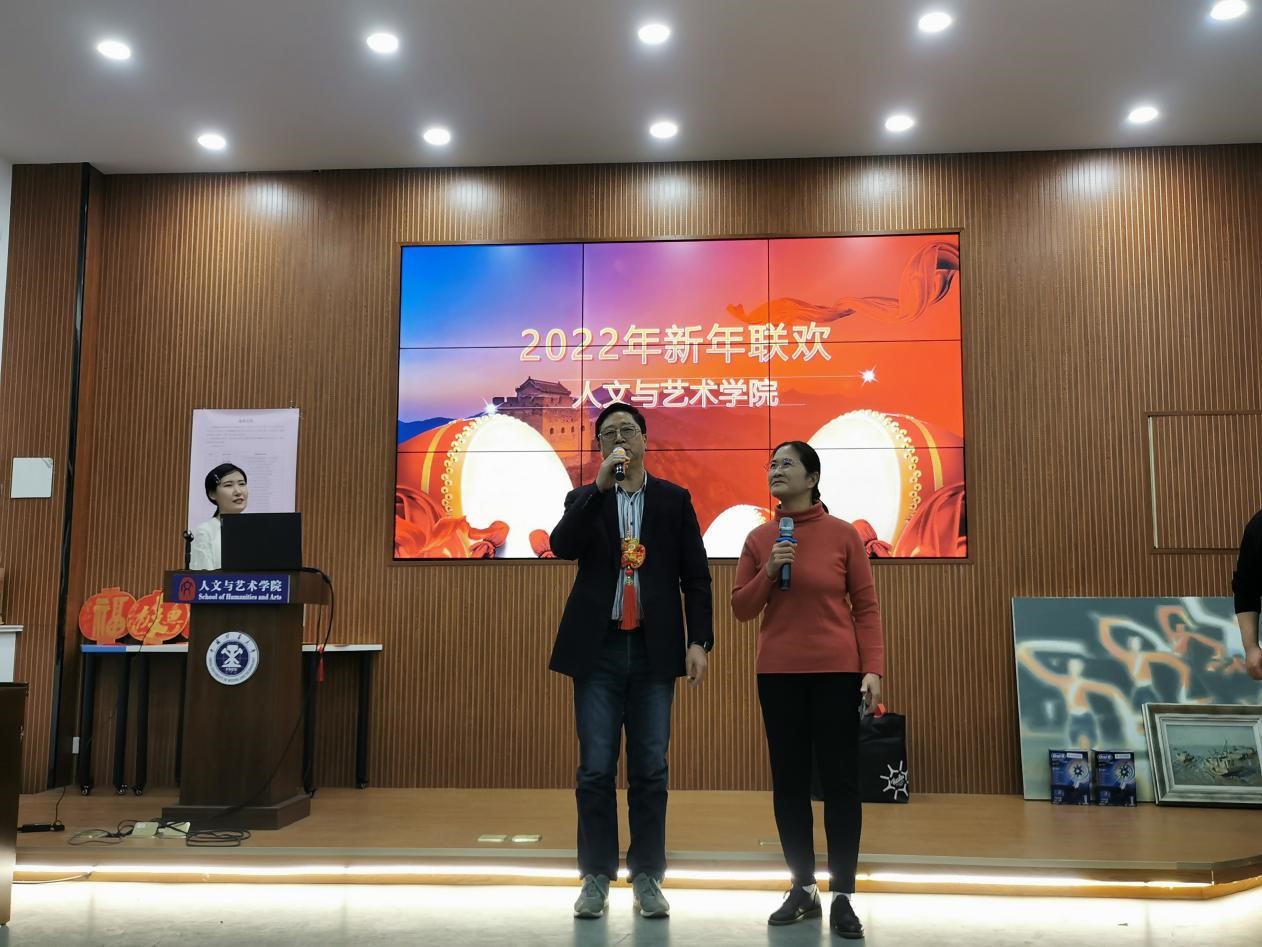 在文A111举办教职工新年联欢会,全体教职工和部分家属济济一堂,喜迎元旦佳节。