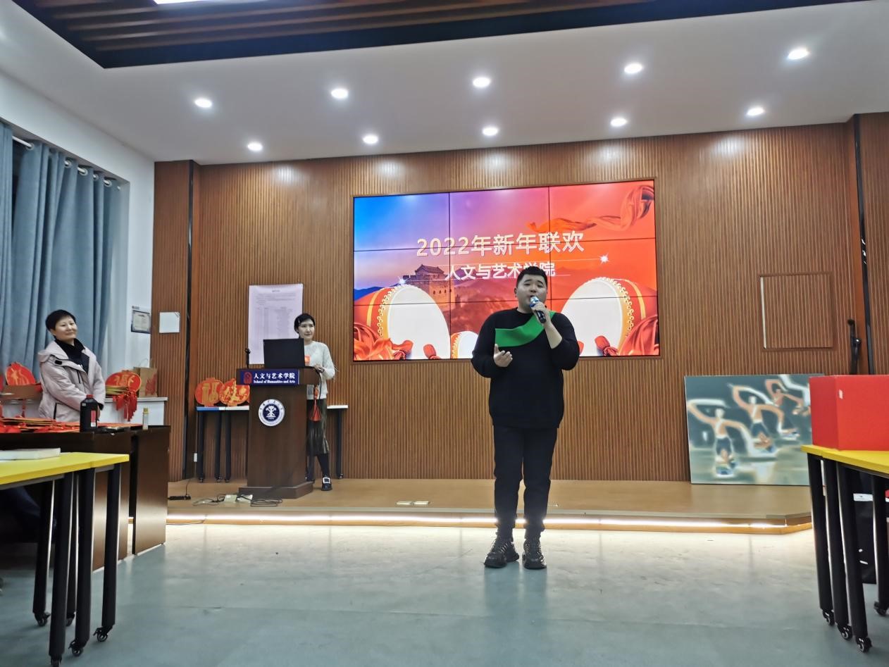 教职工新年联欢会第二阶段的娱乐环节,由董德、郑一萌两位老师主持。首先由机关支部带来精彩的舞蹈《蓝屏晚钟》,获得大家热烈掌声;接下来,广电系王青和任老师的女儿登场朗诵《月光下的中国》,尽现家国情怀;美术系王磊、马平、刘艺超三位老师将自己参加学校“辉煌百年、同心筑梦”画展的作品带到了联欢现场,并为大家进行了详尽地讲解,给联欢带来了高雅艺术氛围。随后,刘艺超老师弹唱曲目《Happy New Year》和《喜欢你》,李广文老师演唱歌曲《渴望》,杨思留、魏凤娥老师合唱《敖包相会》,刘振老师独唱歌曲《等待》,给大家带来了无穷的艺术享受。高淮生老师特意为联欢会带来书法虎年日历, 陈学利老师在现场泼墨挥毫创作福卡,为联欢带来浓郁的新春气息。联欢会以董德老师的一首《爱的代价》为结尾,整个活动期间精彩纷呈,洋溢着欢快的节日氛围,老师们的精彩节目和优秀才艺获得了在场观众的阵阵喝彩与热烈掌声,充满了温馨与祥和。此外,必发