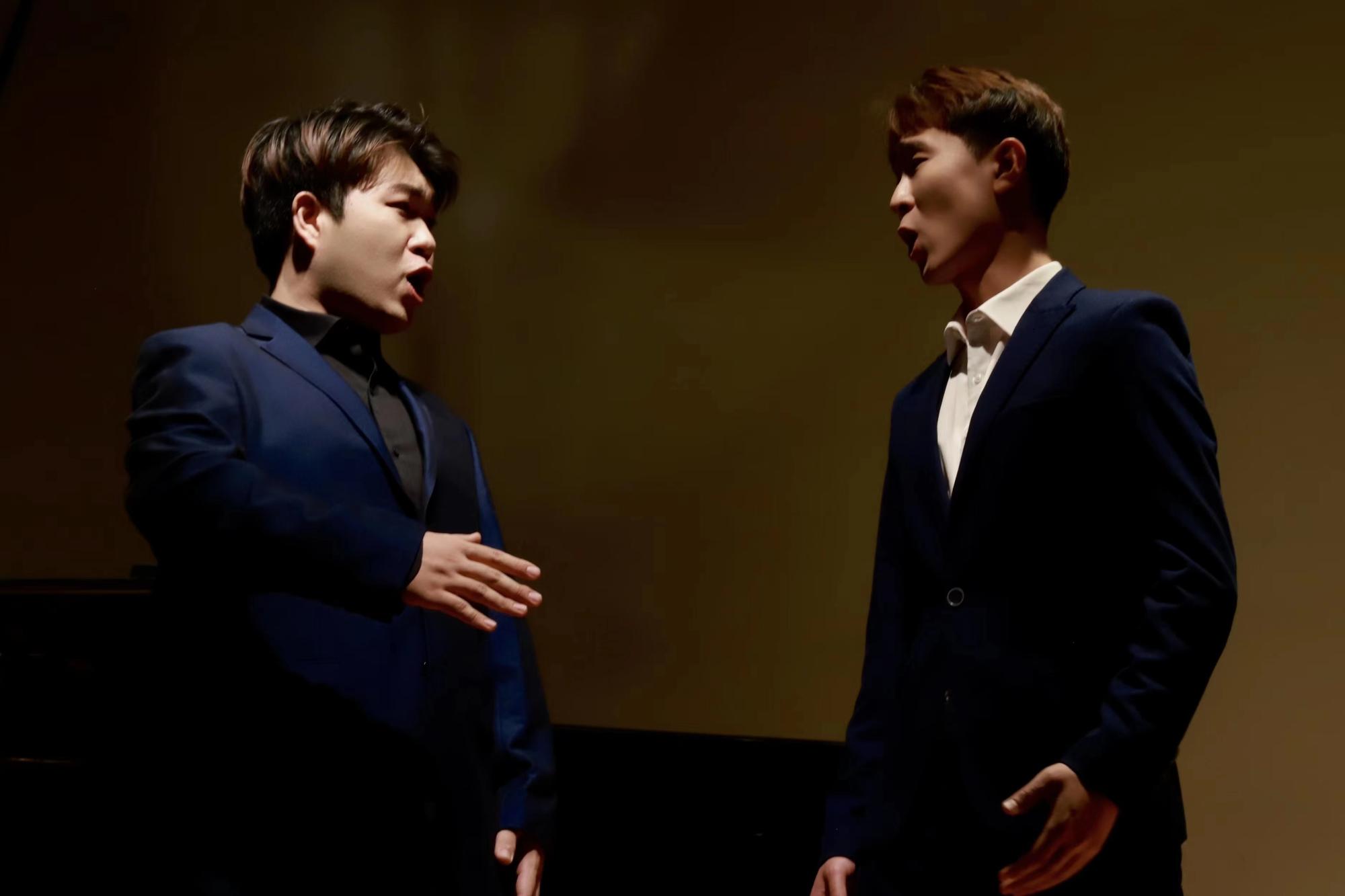 音乐会在曹雪芹作词、刘雪庵作曲的《红豆词》中拉开帷幕。在范斯顿老师优美的钢琴伴奏下,郗望以深情的唱腔将这首凄美的《红楼梦》插曲,演绎得极富传统古典文化韵味,一咏三叹,令听者无不动容。随后,郗望演唱了黄永熙先生作词作曲的《斯人何在》,他将作者寓于词曲中深切的怀念之情,挥洒得淋漓尽致。他表演的《绿树成荫》将观众们带入了绿叶葱茏、巨树成荫的景色中,由衷地表达了对大自然的赞美之情。紧接着,他又演唱了一首深受大众喜爱的经典男高音必唱曲目——《偷洒一滴泪》,把自己被词曲作家所激发的感情倾注到所塑造的音乐形象之中,使音乐形象有血有肉、生动感人,赢得了现场观众的阵阵掌声。音乐会上半场在郗望和助演嘉宾鲁旭冉共同表演的《莫尼山》中结束。音乐会进行到中场时,特邀嘉宾李曦薇和丁咚带来了古筝协奏曲《行者》,曲目优美动听、韵味十足。音乐会下半场上演的第一首作品是郗望独唱的民族歌剧《沂蒙山》的咏叹调《爱永在》。之后,他接连演唱韩剧插曲《相思花》和美国民谣《我深爱之人的头发是黑色的》两首婉转、忧伤的曲目,让观众们沉醉在深情的歌声中。此外,郗望还和助演嘉宾赵璇合唱了《瑶族舞曲》,曲目轻快活泼,充分展现了民族音乐的魅力。音乐会在同名曲《别君叹》在特邀嘉宾王曦梓的古筝加持下达到高潮,现场欢呼声和掌声不断。音乐会在郗望和他的声乐导师宋国旭共同演绎的《鸿雁》中落下帷幕。宋老师寄语郗望未来可期,要像“鸿雁”一样展翅高飞,也要继续脚踏实地努力前行。