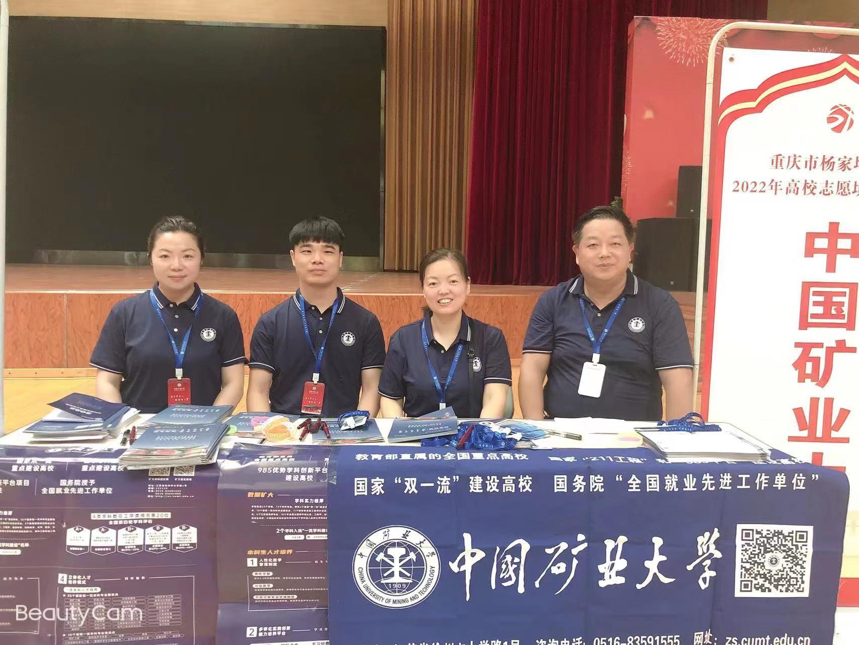 6月25日至6月28日,重庆招生宣传团队纵向深入到重庆市江津中学校、清华中学校、聚奎中学校、铜梁中学校、杨家坪中学校、育才中学校、彭水第一中学等10多所目标中学紧锣密鼓开展面对面招生咨询活动,为现场师生们解读2022年中国矿业大学面向重庆市招生政策,为考生们详细介绍我校优势专业开设情况,发放制作精美的招生宣传册和纪念品,面对各个学校老师、学生、家长提出的问题均一一作出耐心而专业的解答,打消了目标考生报考前疑虑。现场师生表示,今年疫情形势严峻,升学情况也不容乐观,中国矿业大学的老师们此时能够入校宣传,讲实、讲透招生政策,从心底里缓解了他们的报考焦虑。