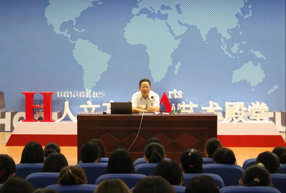 党委副书记刘宁主持,2022级辅导员张瑞亭、宋禹凝和全体新生参加讲座。