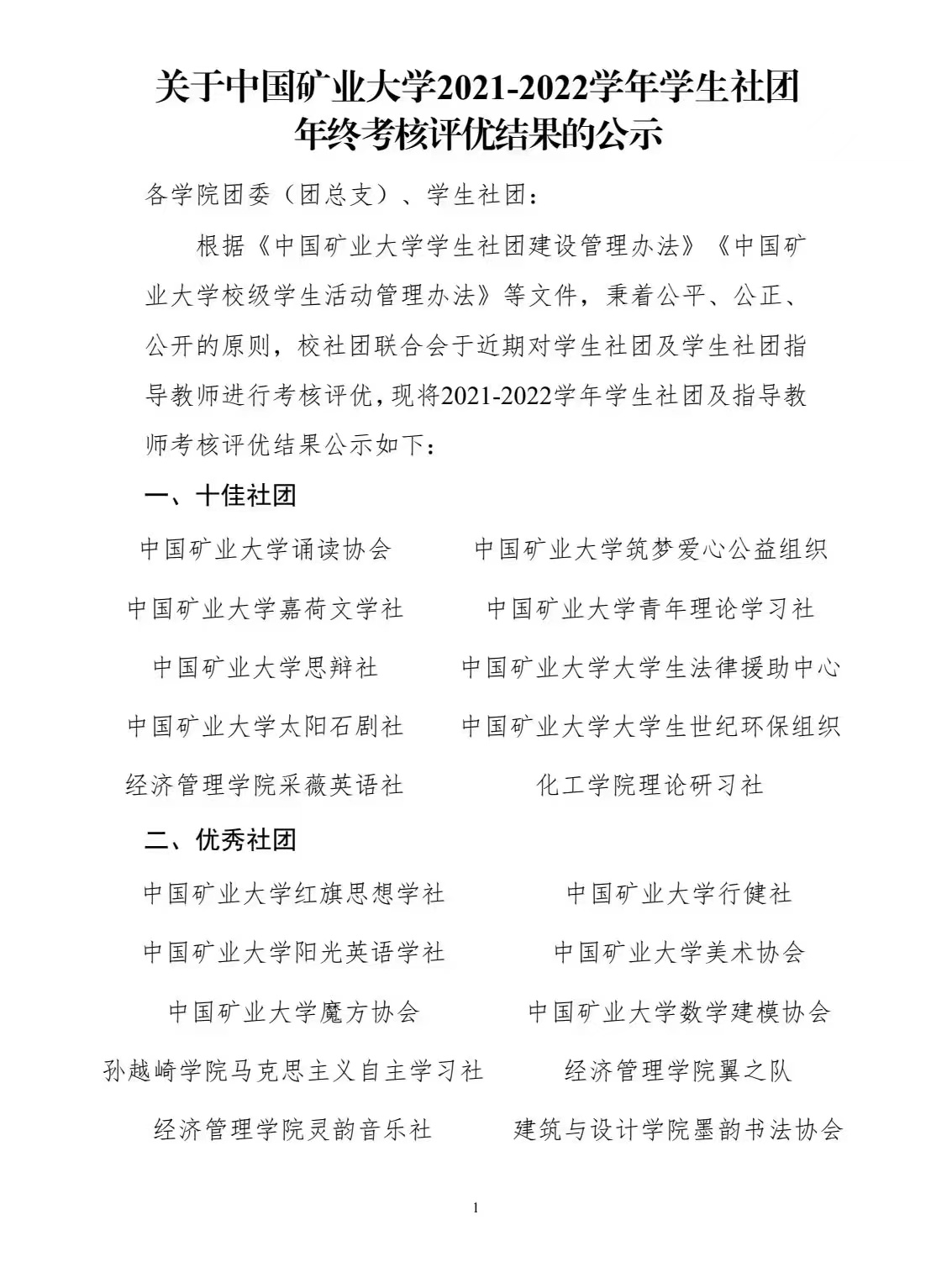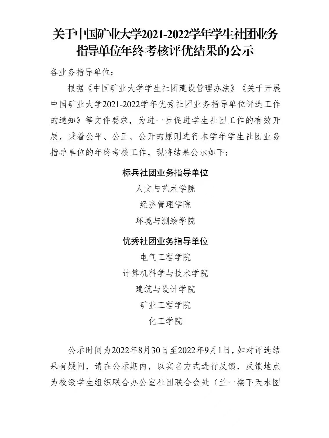 近日,中国矿业大学2021-2022学年学生社团业务指导单位年终考核评优结果及学生社团年终考核评优结果公布,必发