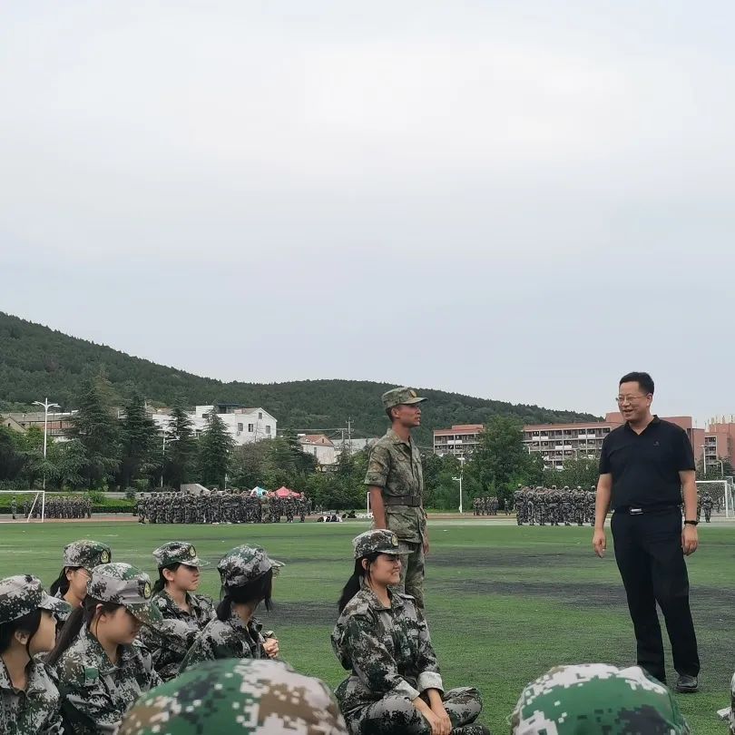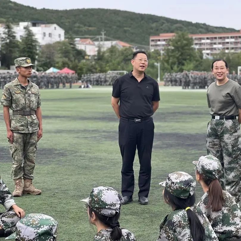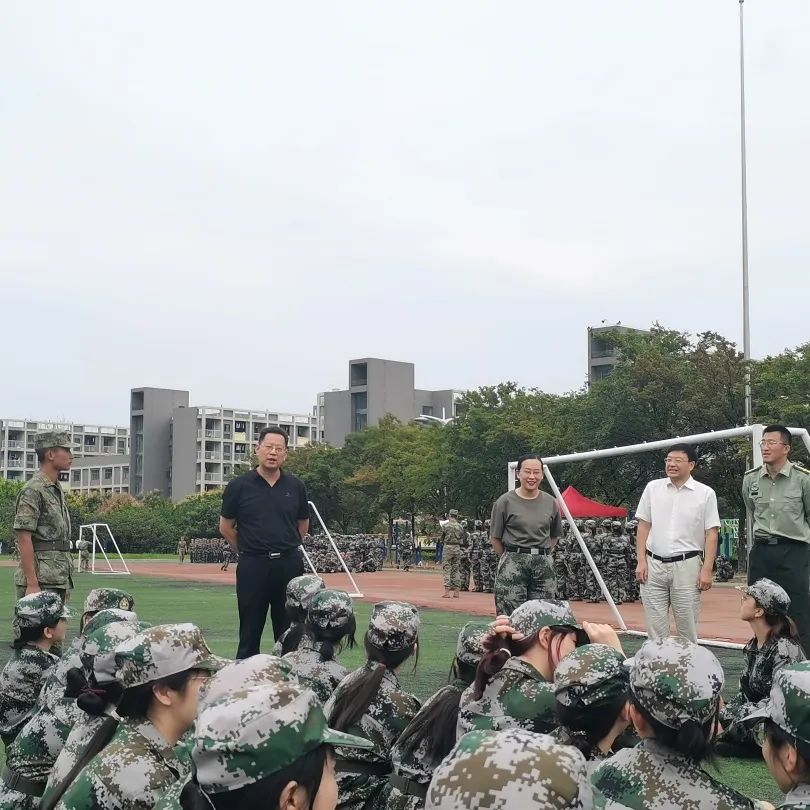 党委书记方跃平,副院长李广文,党委副书记刘宁来到第三运动场,看望军训教官及2022级全体军训学生。