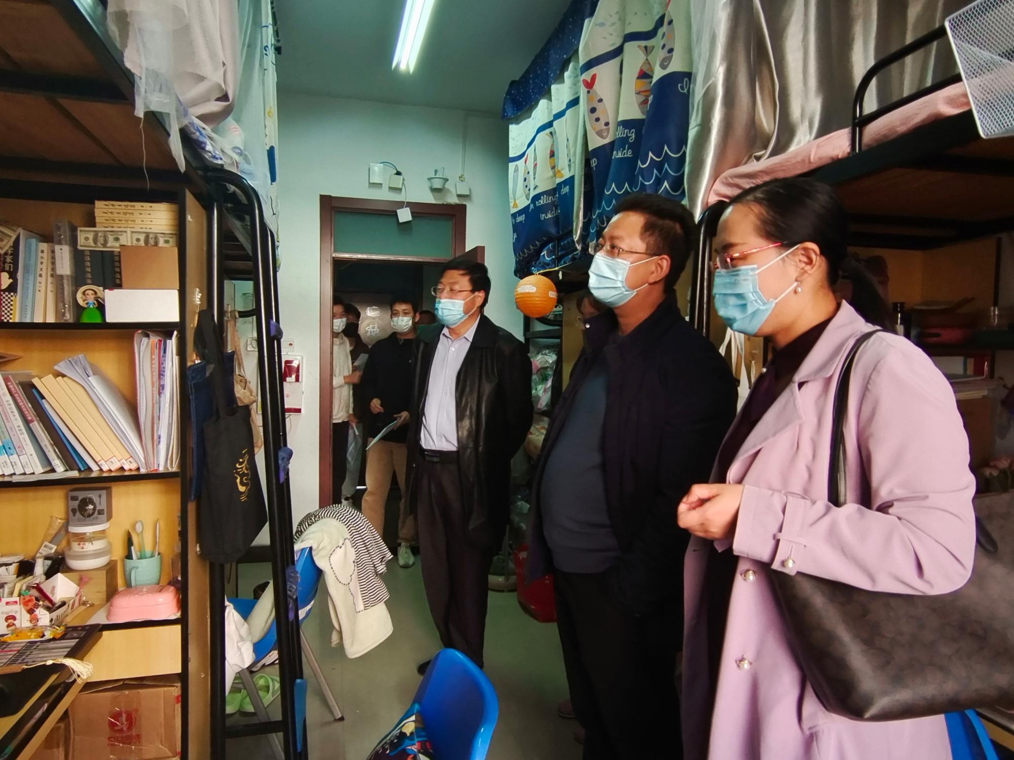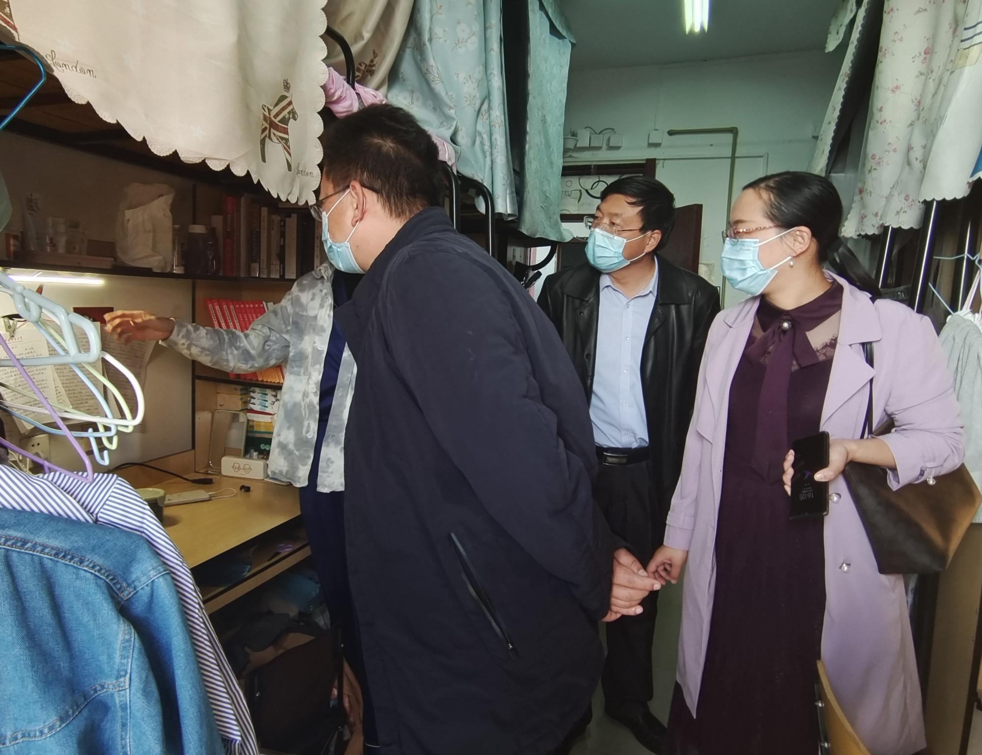 领导们与同学们亲切交谈,就用电安全、宿舍卫生和疫情防控等方面进行了细致的了解,并提出了几点要求:一是要严格遵守学校宿舍安全条例,提高安全意识,杜绝使用大功率电器;二是要继续保持良好的宿舍环境,多通风、勤打扫,并整理好个人用品;三是要遵照学校有关疫情防控的各项管理规定,做好核酸检测等常态化防疫措施。同时也针对个别宿舍存在的诸如使用违规电器、无人情况下未切断电器电源、个人物品乱丢乱放等不足之处,现场提出了整改意见。