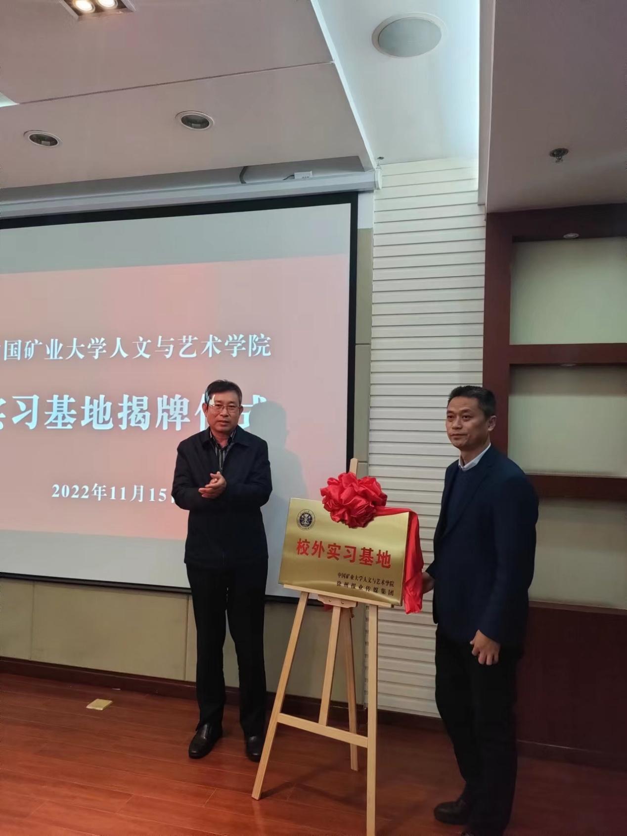 院长史修永和徐州报业传媒集团副总编辑王斌共同为共建基地挂牌。