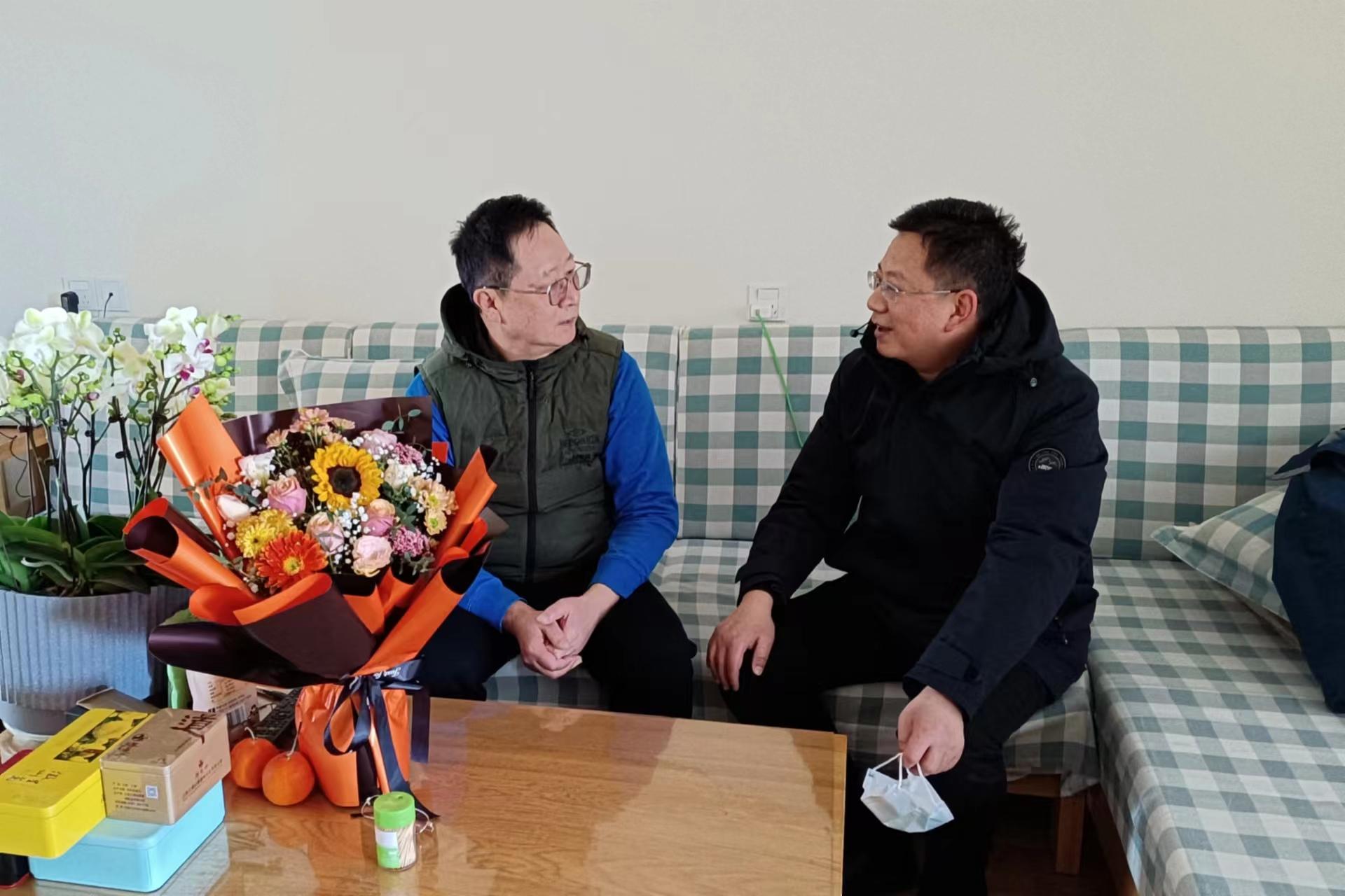 在杨思留教授家中,方跃平书记提前预祝杨老师生日快乐,代表必发