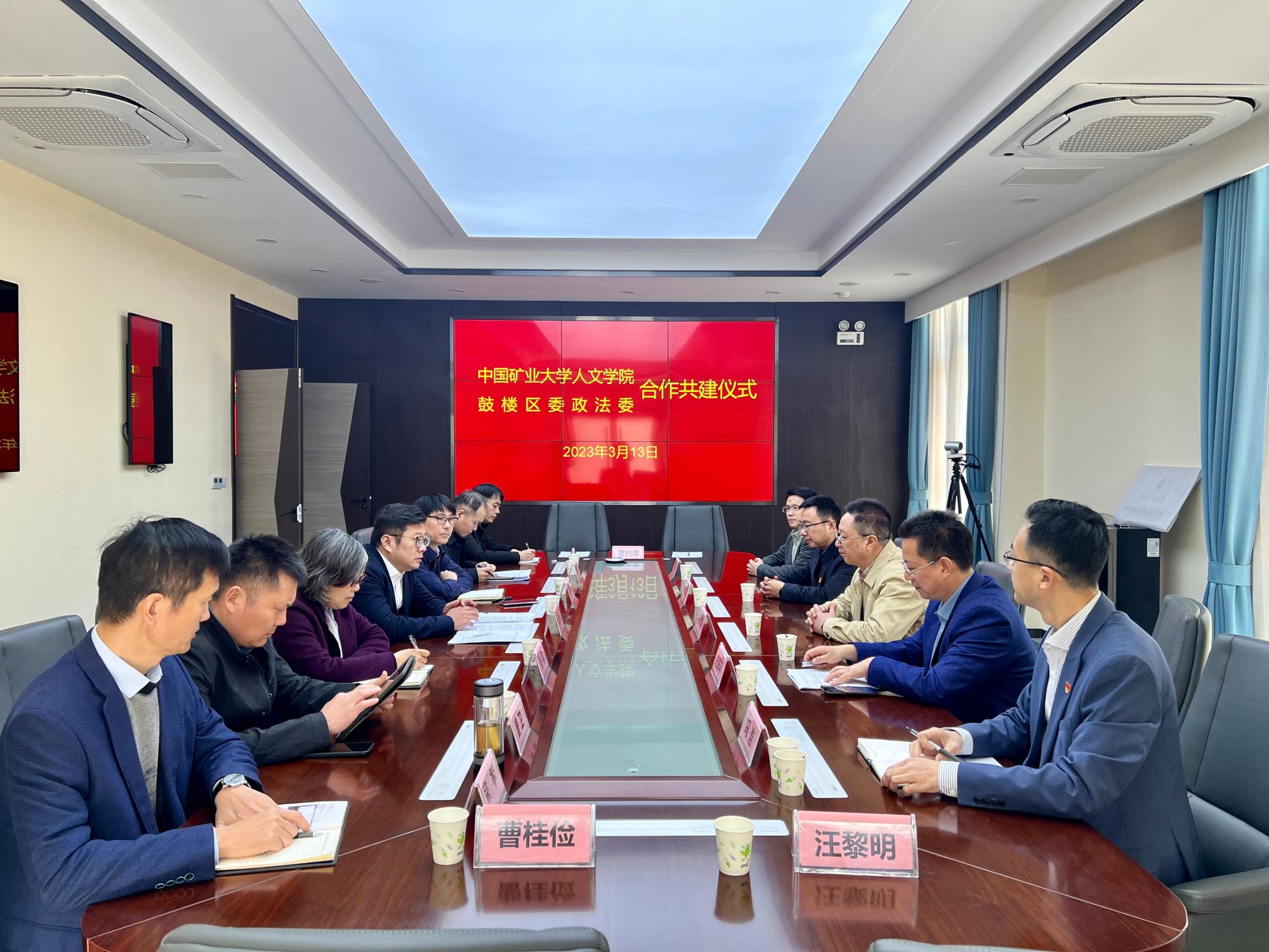 法学系教职工党支部周勇老师与鼓楼区政法委党支部张斌书记共同签署了支部党建共建协议,冯浩老师与戴克主任代表校地双方举行了中国矿业大学法学教学实践基地授牌仪式。双方还就社会治理中基层组织的战斗堡垒作用和党建引领下的基层社会治理的法治实践的主题,进行了交流研讨。