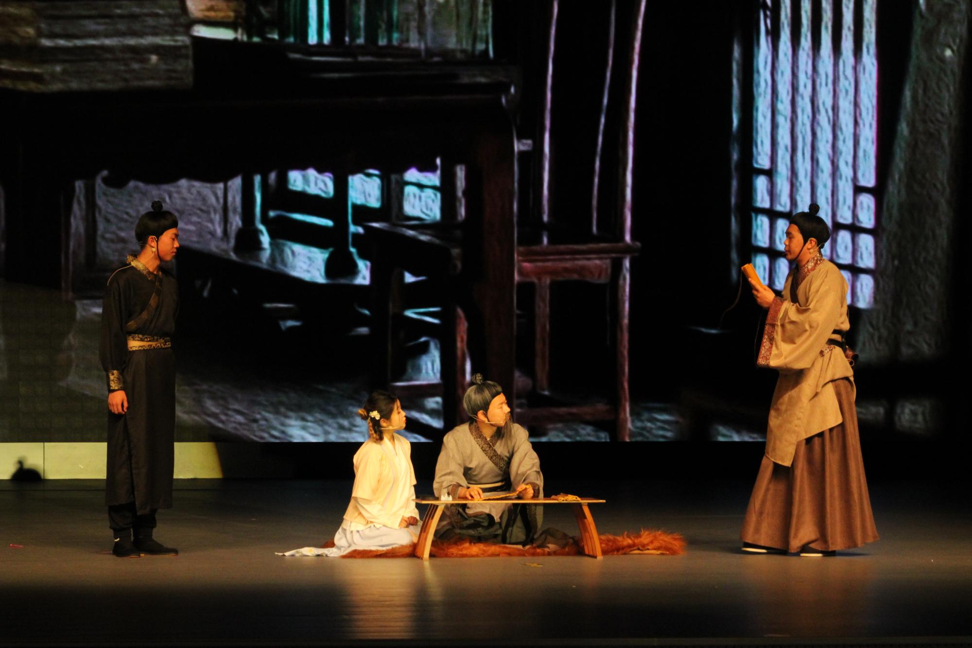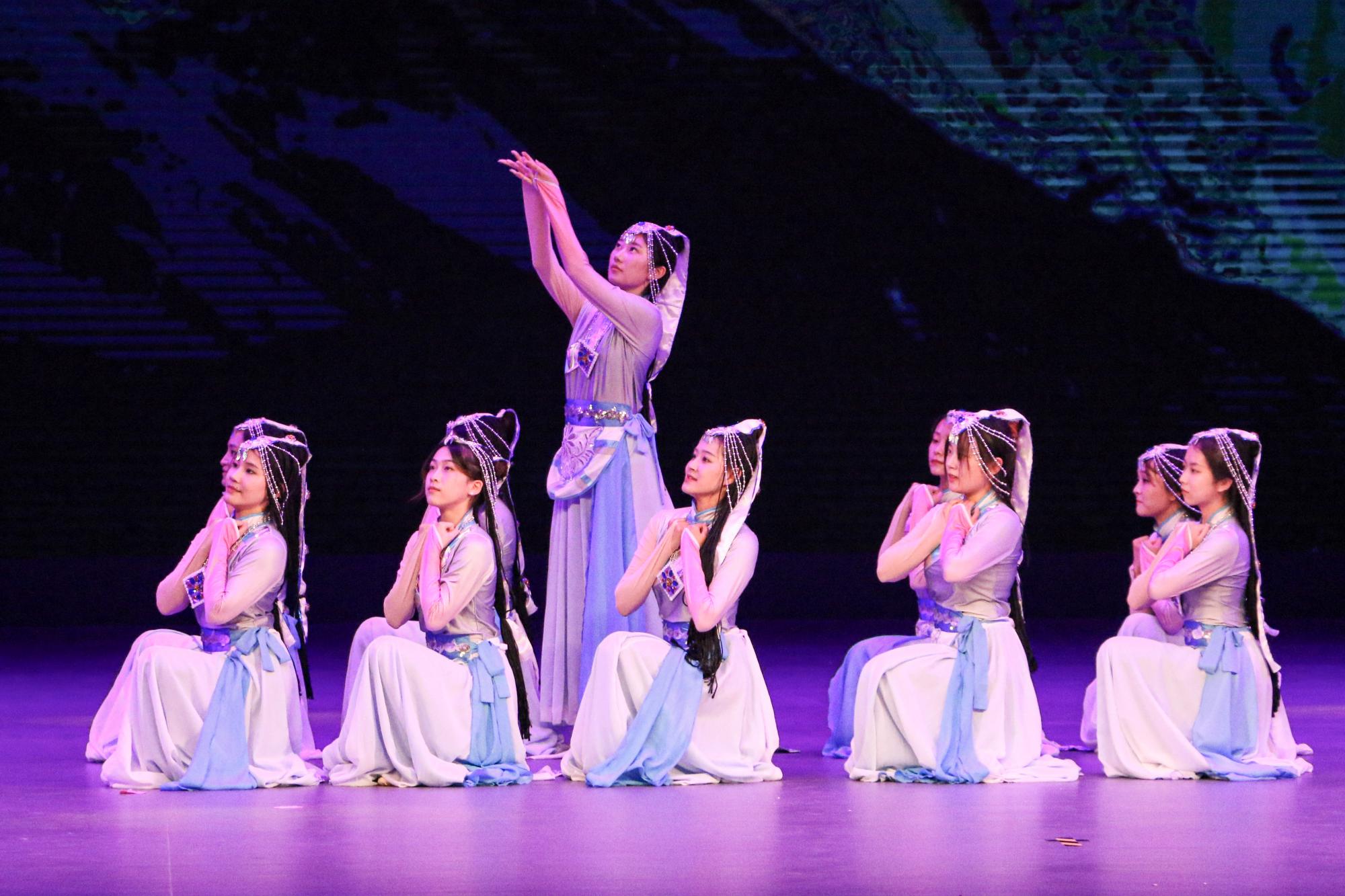 本届诗会汇报演出在叙事角度、节目内容和呈现形式等方面出新出彩,为师生们奉上了一道思想性、艺术性、观赏性俱佳的“文化大餐”。演出在舞蹈《天浴》中拉开帷幕,节目取材于藏族民间“沐浴节”呈现出的人与自然和谐并存美好画面,让观众在遏云响清、舞转回袖之间领略古典魅力。诗会以诗意纵览古今,聚焦新演绎。诗词咏唱《清平调》《声声慢》悦耳动听、余音袅袅,让经典再现原有的韵律、温度和情感;历史短剧《苏公炭》《汉书》《商鞅》将岁月长河中一幕幕鲜活的景象跃然展现于舞台之上。诗会以共情润心润人,展示新风格。朗诵《从五月款款走来的女子》以独特的视角,将谢道韫、李清照等女性文学家的故事娓娓道来,展示文学、生命与灵魂之美;《诗词里的家国》《唐诗里的中国》营造了丰富的意境,传递了千古诗意。诗会关照历史与现实,亦书写了新篇章。《我们的青春》以诗歌方式跨越时空,展现历久弥新的奉献精神和中华文化永恒的精神内核;配音《声罗万象》形式新颖生动,表演极具感染力;《读中国》《青春颂》则以诗诵情、以歌咏志,充分展现矿大师生昂扬奋发的精神面貌和矢志不渝的家国情怀。演出在女生小合唱《绿水青山》婉转悠扬的旋律中落幕。