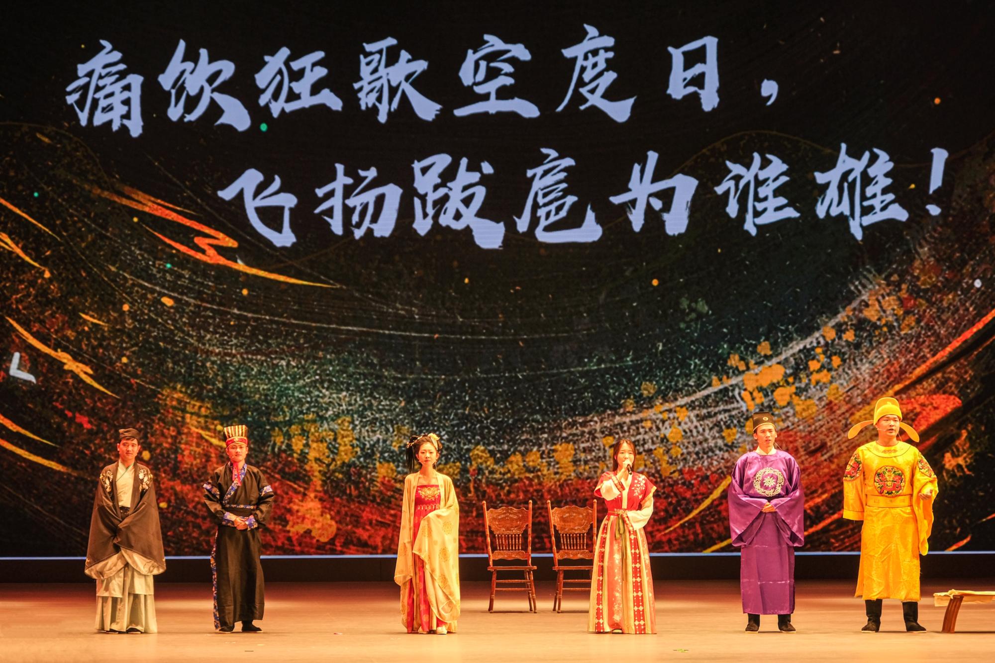 第十六届五月诗会,围绕学习宣传贯彻党的二十大精神、弘扬中华优秀传统文化、铸牢中华民族共同体意识、深化全民阅读创建“书香矿大”等主题设计了征文比赛、配音比赛、飞花令比赛和朗诵比赛等四个子活动。演出现场还设置了“楚韵汉风古彭城”互动答题和飞花令决赛两个环节,现场观众参与踊跃,充分展现了矿大师生良好的诗词修养与文化素质。