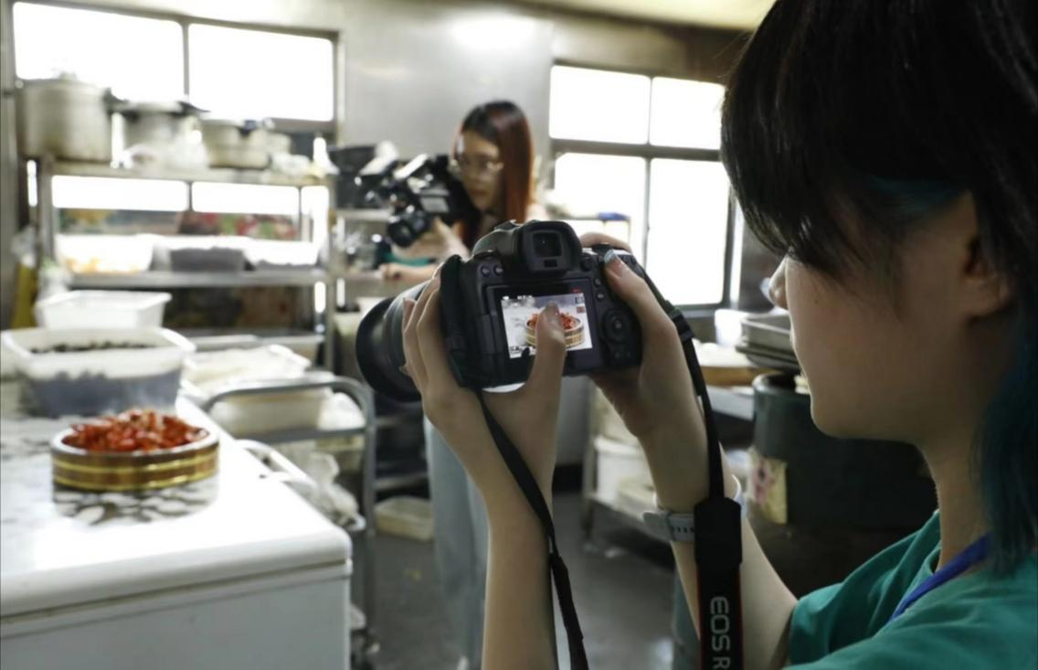 参赛学生陈嘉蕙等深入制作现场拍摄当地特色美食