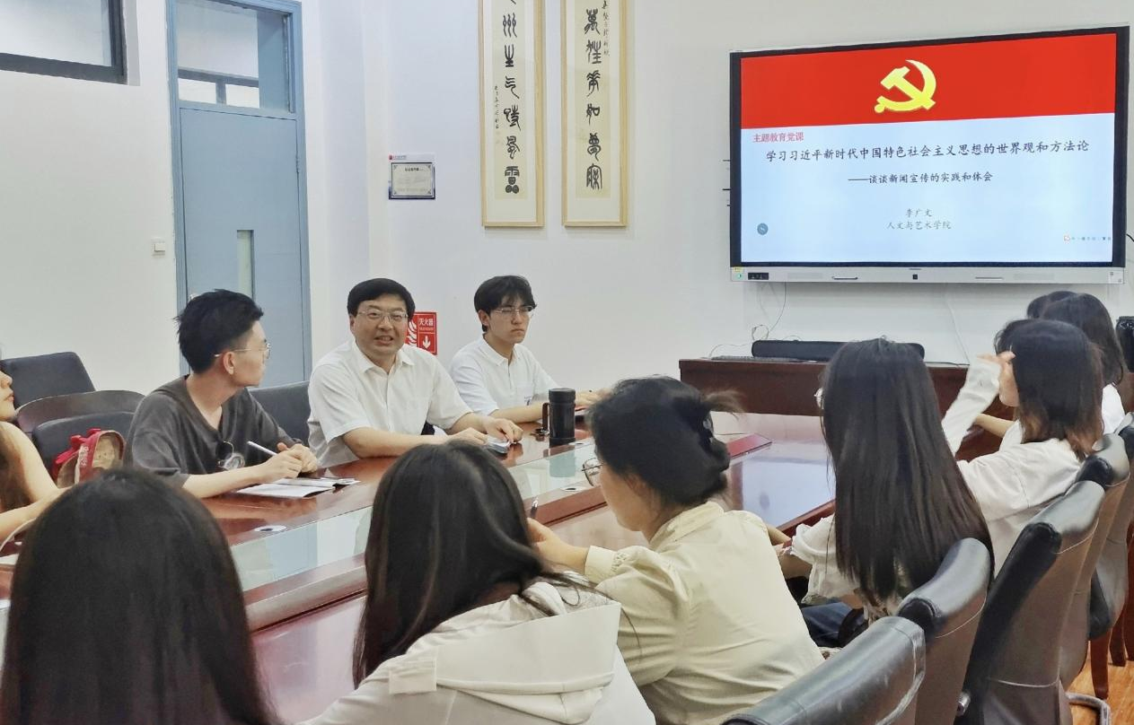 大学生传媒中心学生骨干开展了题为《学习习近平新时代中国特色社会主义思想的世界观和方法论——漫谈新闻宣传的心得和体会》主题教育党课。李广文从坚持人民至上的本体论、自信自立的文化观、守正创新的统一论、问题导向的创新性、系统观念的方法论、胸怀天下的世界观等方面,进行了系统而详细的分享。李广文还结合自身从事宣传舆论工作经历,与同学们探讨了如何进一步提升必发
