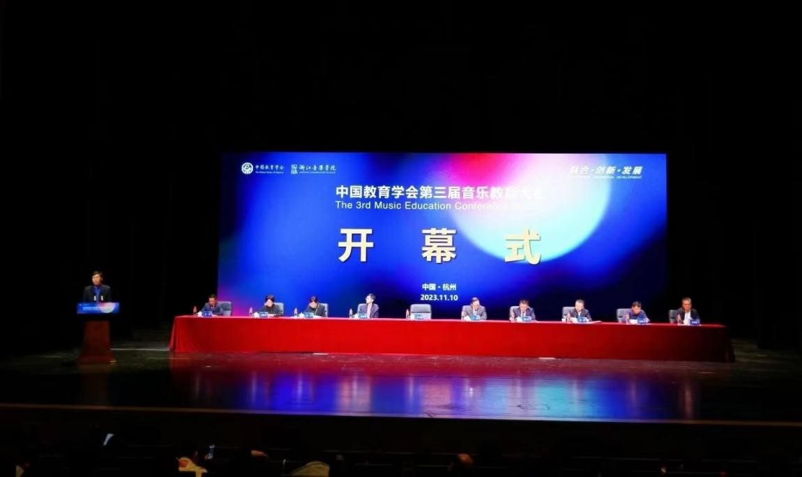 承办,人民教育出版社、《中小学音乐教育》编辑部、中国美育教育网协办的“中国教育学会第三届音乐教育大会”在浙江杭州举办。来自全国40多所高校的校(院)长、音乐教育领域专家学者,以及来自全国20多个省市的教研员、一线教师共1300余人参会,围绕“融合·创新·发展”主题展开深入研讨。