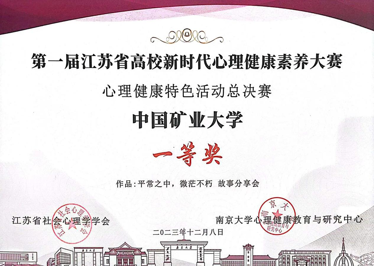 心理健康辅导站和“文·心”赋能辅导员工作室承办的“平常之中,微茫不朽”生命故事分享会荣获心理健康特色活动一等奖。