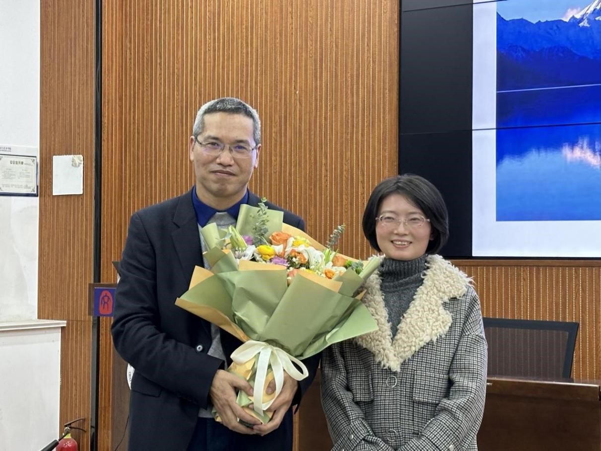 赵鸣老师给方环海教授献花