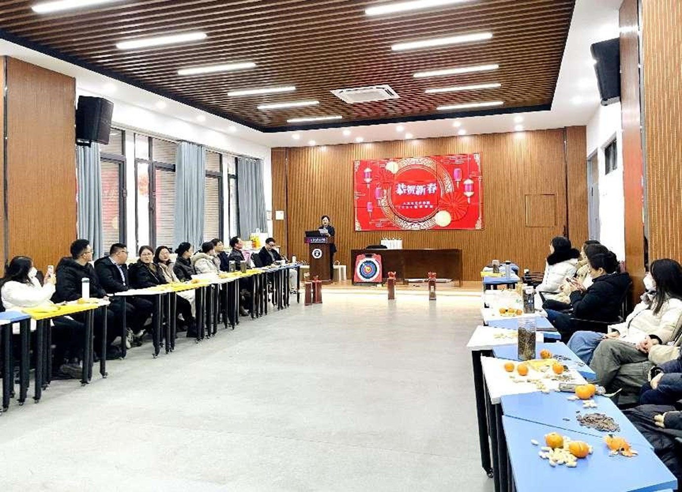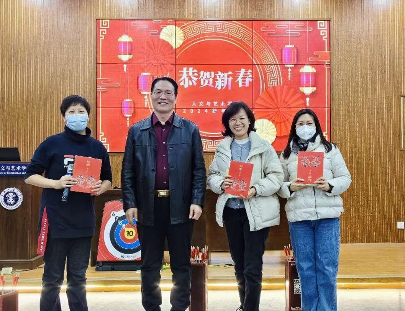 在文A111举办教职工新年联欢会,全院教职工济济一堂,喜迎新年。人文必发