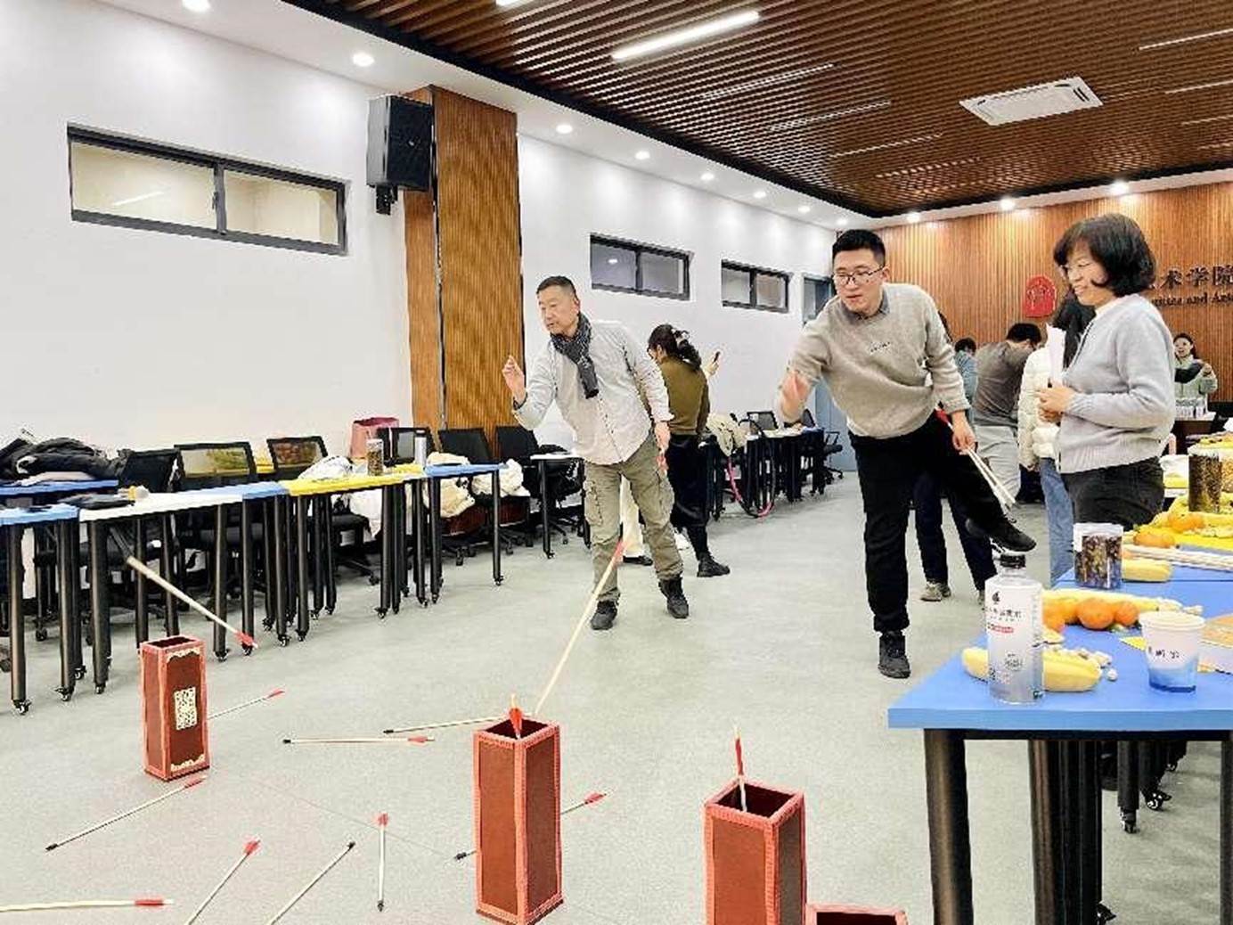 90级采矿专业杰出校友刘兆军为大家带来精彩诗朗诵《再别康桥》,校友真情动人的艺术展示赢得在场老师的热烈掌声。音乐系教师宋国旭演绎经典曲目《鸿雁》,给大家带来一场听觉盛宴,现场气氛热烈。随后在场的教职工们积极参与一米投壶、一分钟拉力器、计时旋转呼啦圈等游戏项目,在热烈欢快的氛围中,教职工们释放压力放松身心,共享快乐时光,加强必发