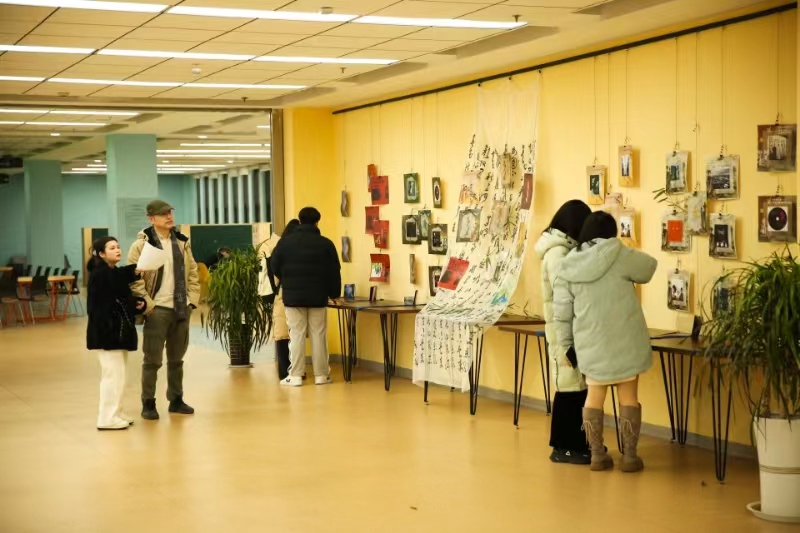 副院长刘振谈到“近年来,中国矿业大学积极倡导于全校范围内开设更多的美育实践活动,强调坚定文化自信,本次展览则彻底落实以德树人、以美立人,执行美育浸润行动计划,为中国矿业大学培养师生审美感知、开阔美育视野提供了新方案”。同时,他也为中国矿业大学音乐艺术管理专业方向的未来培养发展提供了新蓝图。随后,李臻老师对本次展览进行了点评,她提到,本次展出是中国矿业大学音乐专业领域活动的新尝试,图书馆作为学生成长、学习的重要场所,在此地办展有助于学生感受其蕴藏的文化内涵,便于学生接受展览传递的文化知识。最后,董德老师分别从指导教师、研究者、艺术家的不同视角以及和策展人雷涵淇的合作体验方面分享了自己的感受认知,并为雷涵淇及中国矿业大学音乐艺术管理专业的发展前景送上了美好的祝愿。本次发布会在2023级流行声乐专业技能方向的李炜灿同学献唱两首展览收录歌曲——《曹操》《醉赤壁》后完满结束。