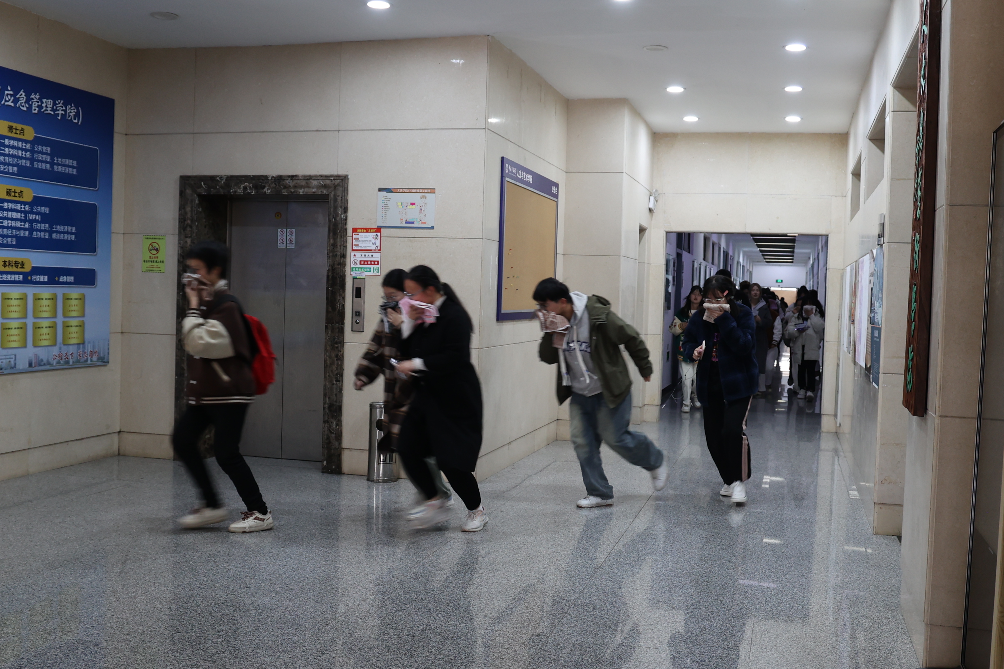 在文科楼联合开展消防演练活动。必发