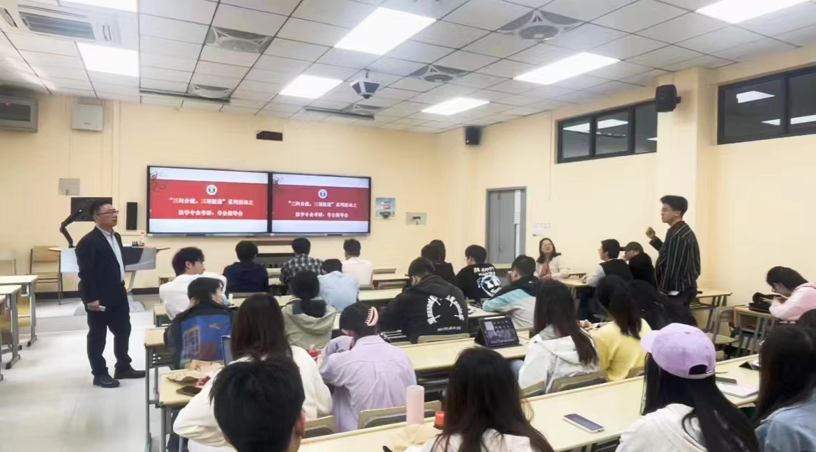 副院长汤道路对学生进行了专业指导,2021级辅导员李玉雪和法学2021级50余名学生共同参加了此次指导会。