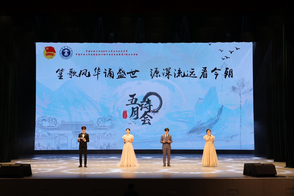 第十七届五月诗会在主题内涵、节目编排和舞美设计等方面都延续历届诗会的传统,始终贴合时代发展变化,既不忘本来,回顾矿大的建校历史和诗风传统;又在中国矿业大学115周年校庆背景下畅想未来,展现矿大人谱写时代新篇的豪情壮志。本次诗会围绕庆祝115周年校庆、弘扬五四精神、传播中华优秀传统文化、深化全民阅读、创建“书香矿大”等主题设计了征文比赛、配音比赛、飞花令比赛和朗诵比赛等四个子活动。“五月诗会”系列活动的开展,体现了我校学生蓬勃向上的精神风貌和良好的文学修养,有助于在全校形成浓郁的文化氛围。