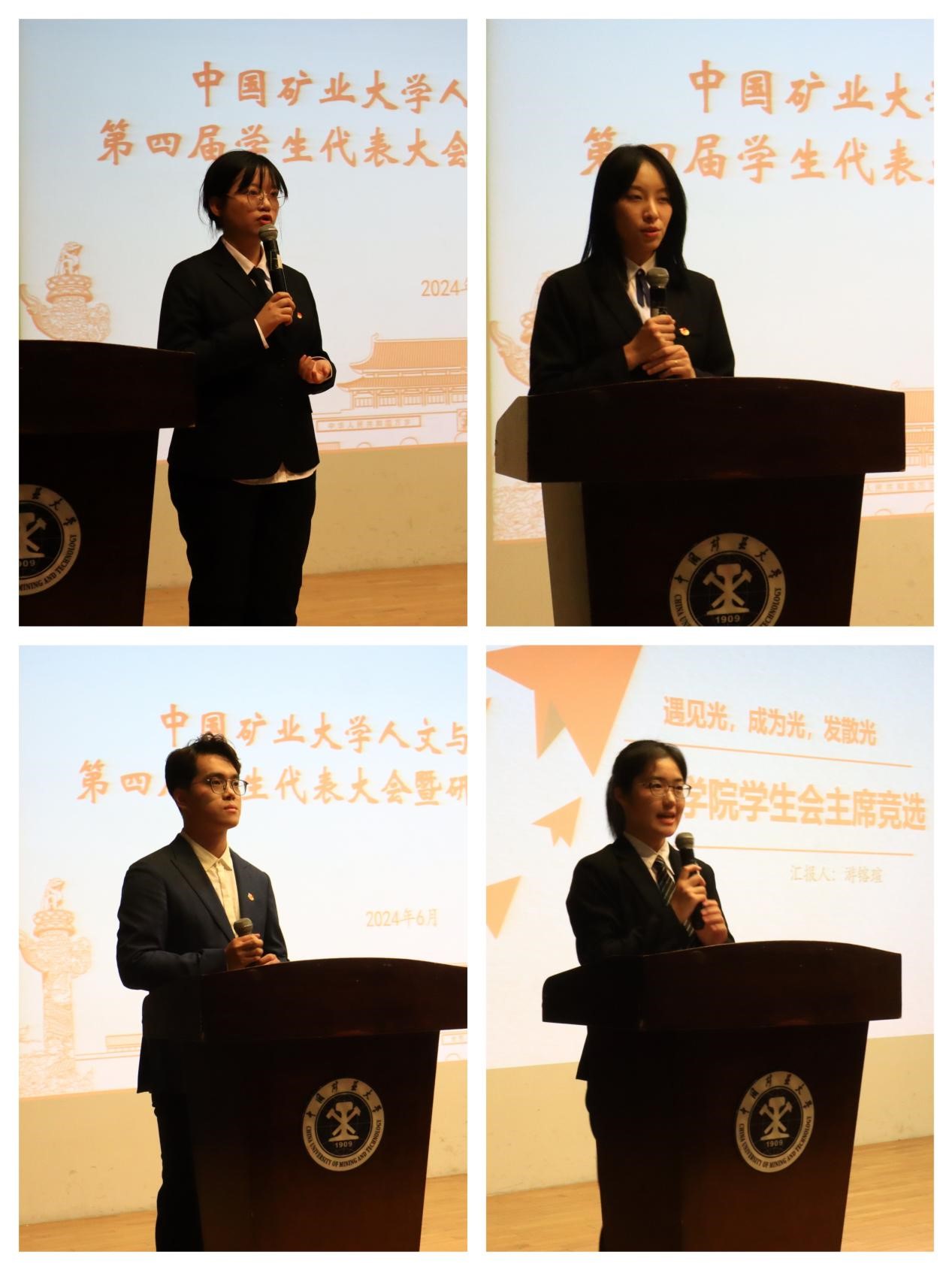 第五届学生会主席团成员候选人作竞职演讲。李瑭、丁若涵、袁嘉晟、游镕瑄就个人简历、工作经验、个人优势及未来展望等方面进行现场陈述,个人展示过后老师与学生代表进行提问,各位候选人依次回答。所有候选人展示完毕后,参会老师与学生代表进行不记名投票,由计票员张鹏宣布选举结果。