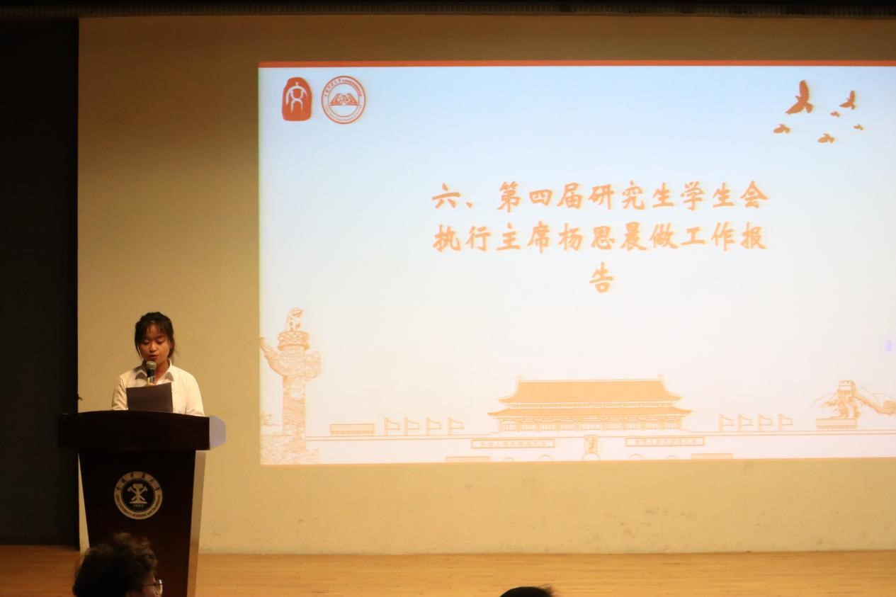 第四届研究生会执行主席杨思晨做工作报告
