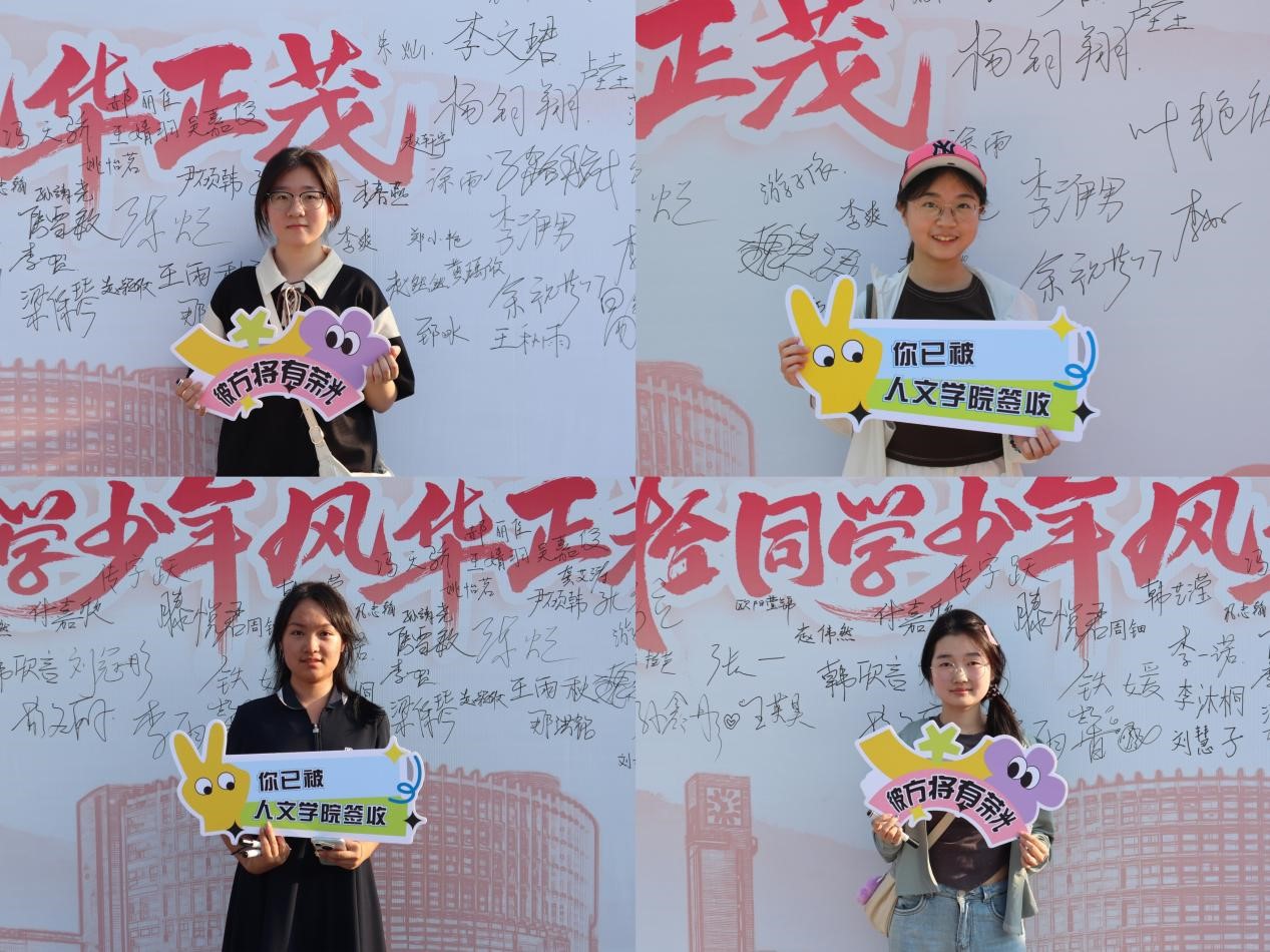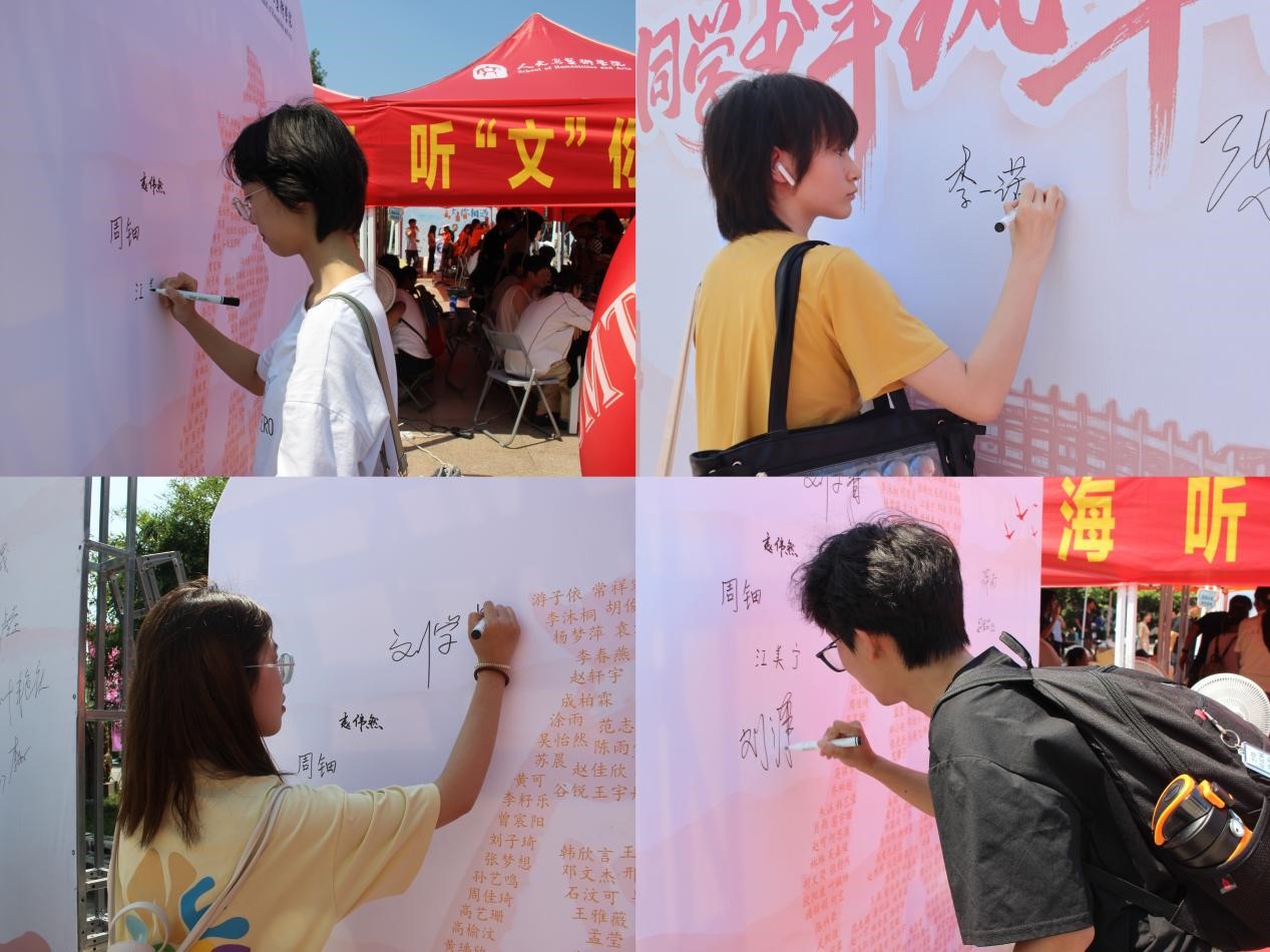 在志愿者的引导下,新生们来到签名墙处签下自己的名字,并与家人合影留念,就此开启自己的大学生活,带着父母的殷殷期盼、怀揣着对大学生活的憧憬与向往开启了一段全新的旅程。