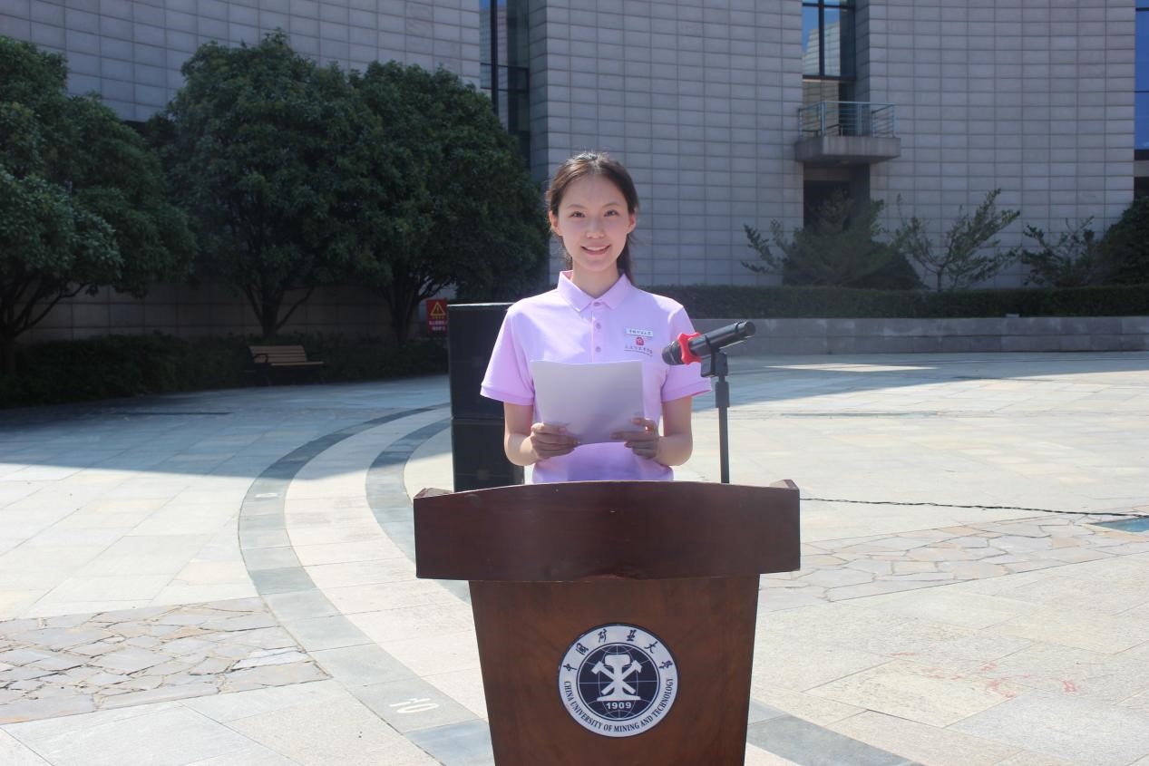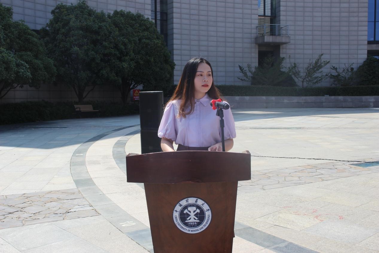 汉语言文学22-1班邓雅文、音乐硕士2023级梁钦杰作为老生代表发言。他们回顾了自己的大学生涯,结合在学习、学生工作、社团活动等多方面的经历与收获,表达了对矿大与人文必发