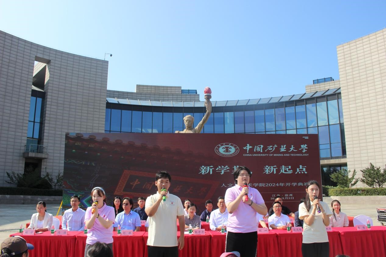 网络与新媒体24-1班赵轩宇、新闻传播硕士2024级宋玮佳作为新生代表发言。她们讲述了自己与矿大、与人文必发