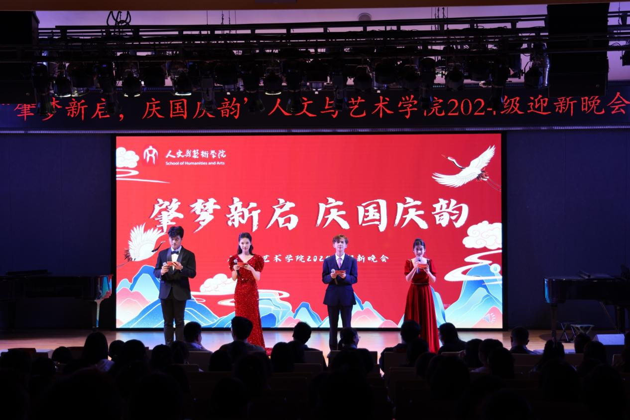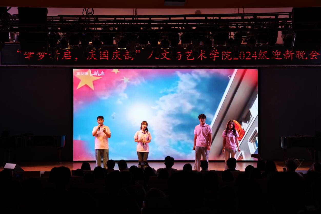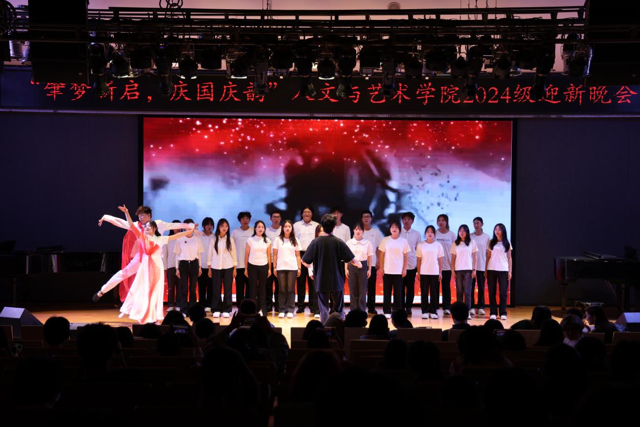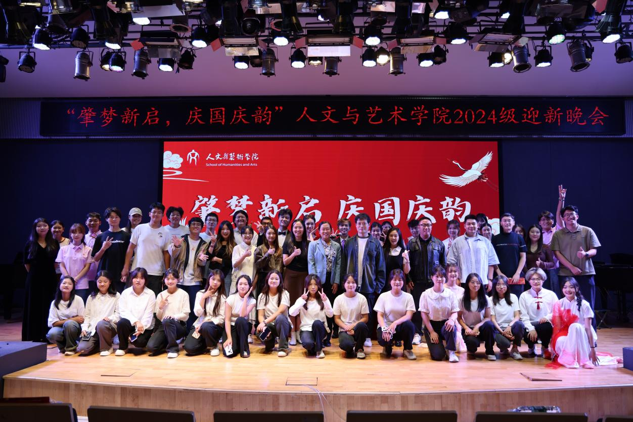 肇梦新启,庆国庆韵。此次晚会的举办不仅为24级人文新生的校园生活增添了亮丽的色彩,更表达了人文师生对祖国的美好祝愿。愿2024级人文学子以梦为马、驰骋苍穹,祝祖国母亲岁捻年丰、繁荣昌盛!