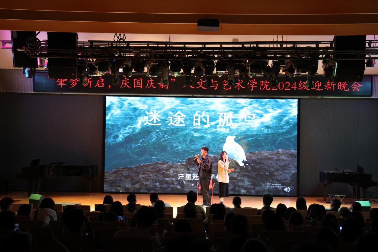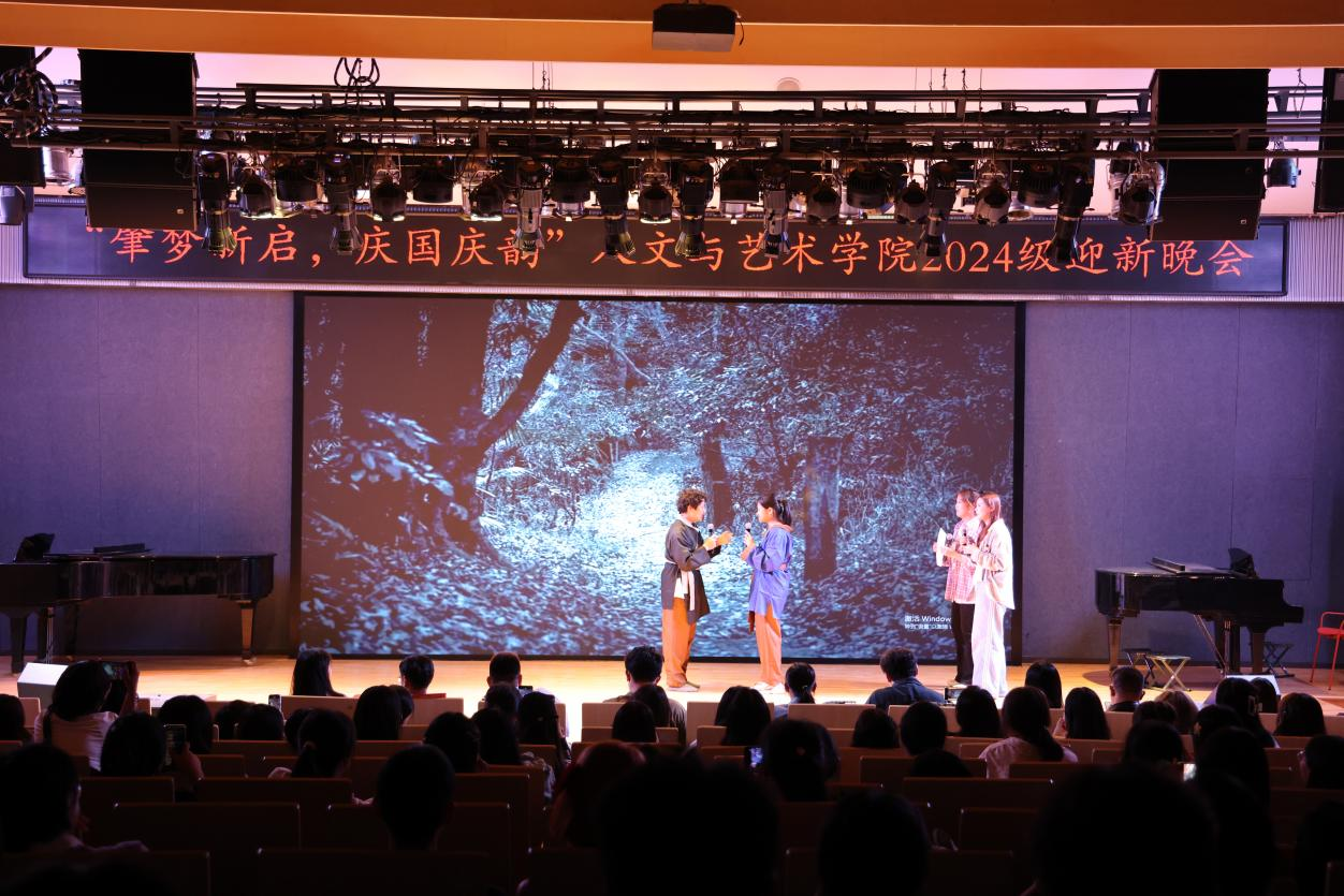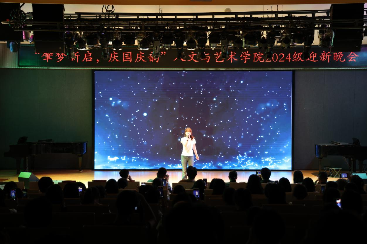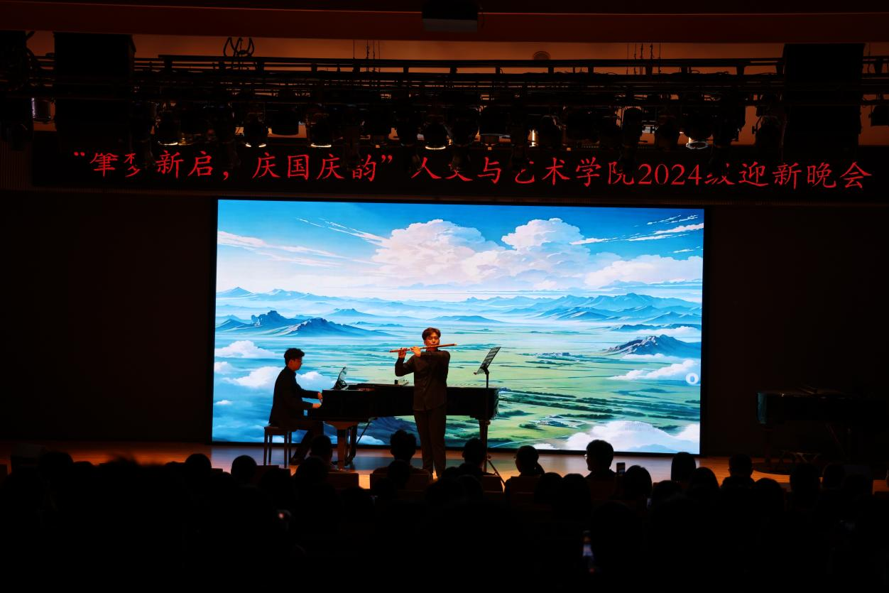 肇梦新启,庆国庆韵。此次晚会的举办不仅为24级人文新生的校园生活增添了亮丽的色彩,更表达了人文师生对祖国的美好祝愿。愿2024级人文学子以梦为马、驰骋苍穹,祝祖国母亲岁捻年丰、繁荣昌盛!