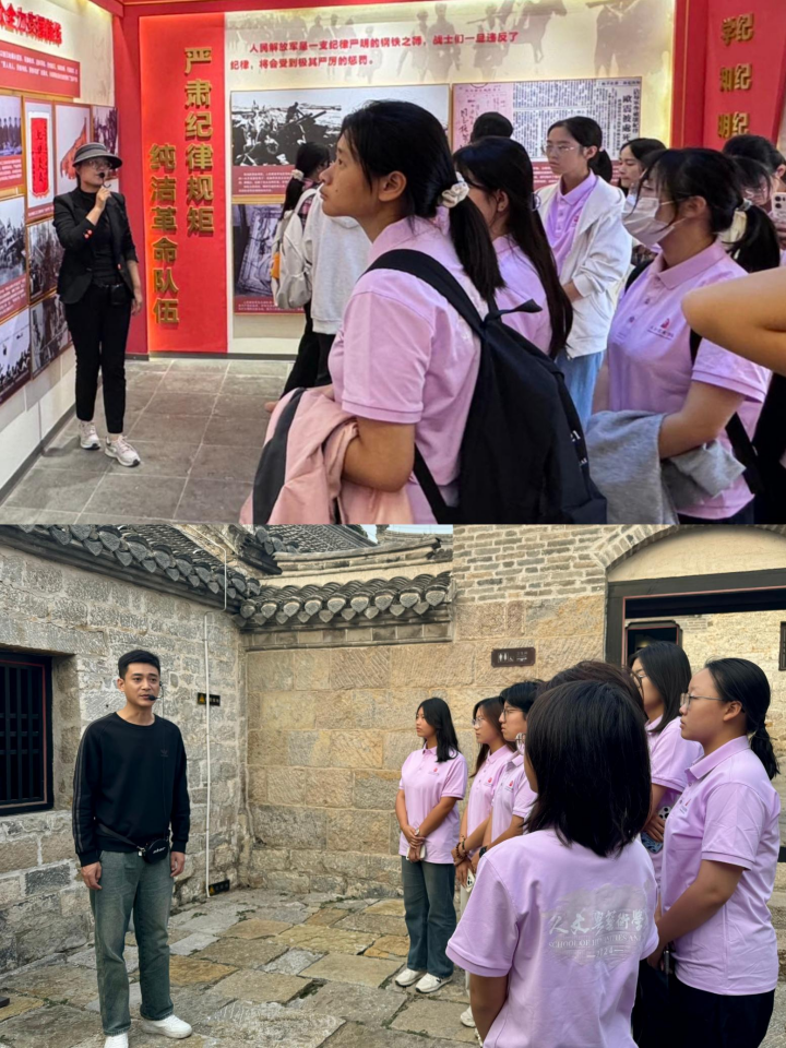 在汉王镇渡江战役总前委旧址、陈列馆面向2024级全体同学开展廉洁文化教育课程,2024级专职辅导员刘青、兼职辅导员王子栋、必发