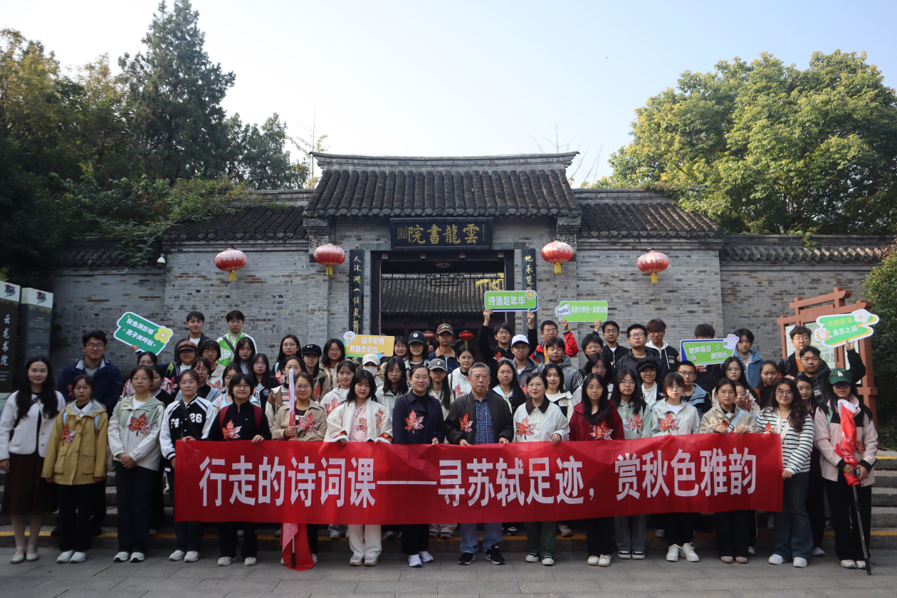 师生们共同参观了黄茅冈、云龙书院、东坡石床、放鹤亭等景点。期间,管仁福老师和景区讲解员结合苏轼诗词,为大家介绍了景点背后的历史故事,引导大家探寻苏轼在徐州的独特印记。大家细细聆听讲解,近距离体味精神文化遗韵,并在放鹤亭前朗诵《放鹤亭记》,至观景台合影留念。