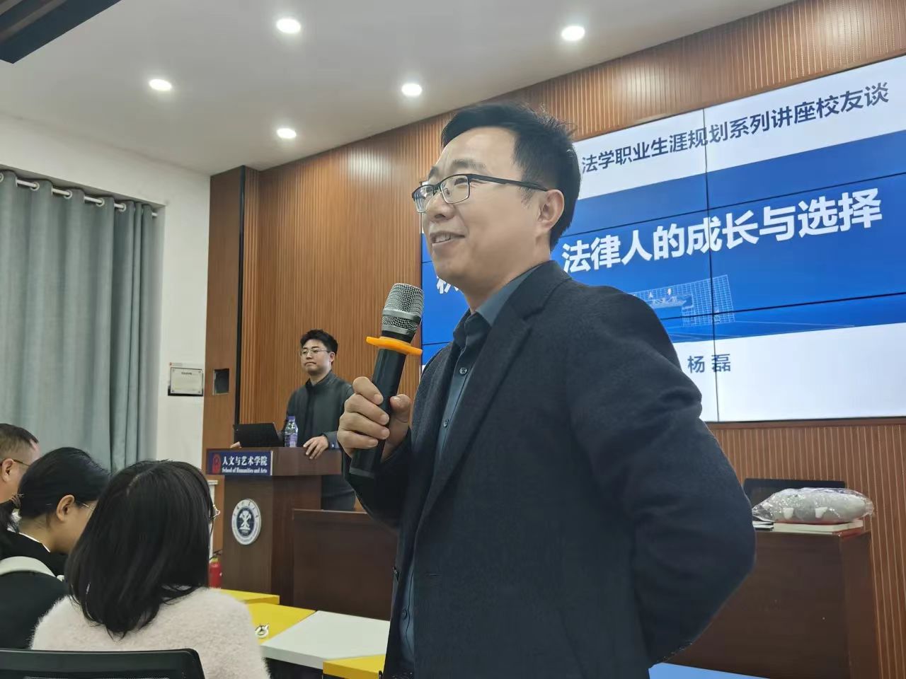 杨磊结合自身的求学、求职经历,建议大家确立一个身边的榜样,并要对其产生向往心理,强调榜样作为“偶像”的引领作用。他认为,法学学生应该不断将理论转化为实践的经验整理成册,强调大家要熟悉司法制度并对此产生思考,他结合身边优秀学子真实案例,勉励大家要不断学习、不断进步,不拘泥于一时得失,要积极适应所处“环境”“平台”,积极寻找“共鸣”的同行者。之后,同学们就大学生涯规划、实习岗位选择等问题与杨磊展开积极交流,大家纷纷表示收获颇丰、受益匪浅。