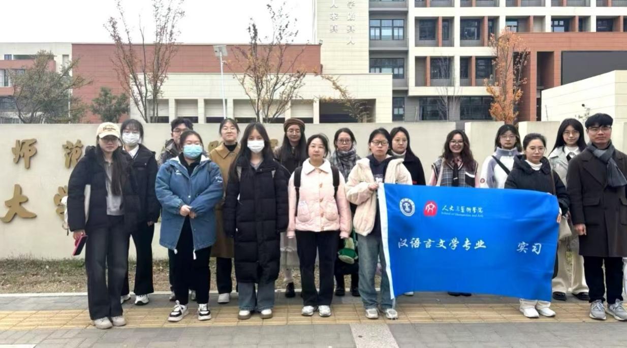 2024年12月3日上午,在文艳蓉老师、王鑫老师的指导下,汉语言文学专业2021级十五名学生于徐州市大学路实验学校南校区正式开启了为期六周的毕业实习。徐州市大学路实验学校常务副校长祖庆丽、业务副校长陈东、教科研副主任王鹤潼及数十位一线教师热情接待了中文系师生。
