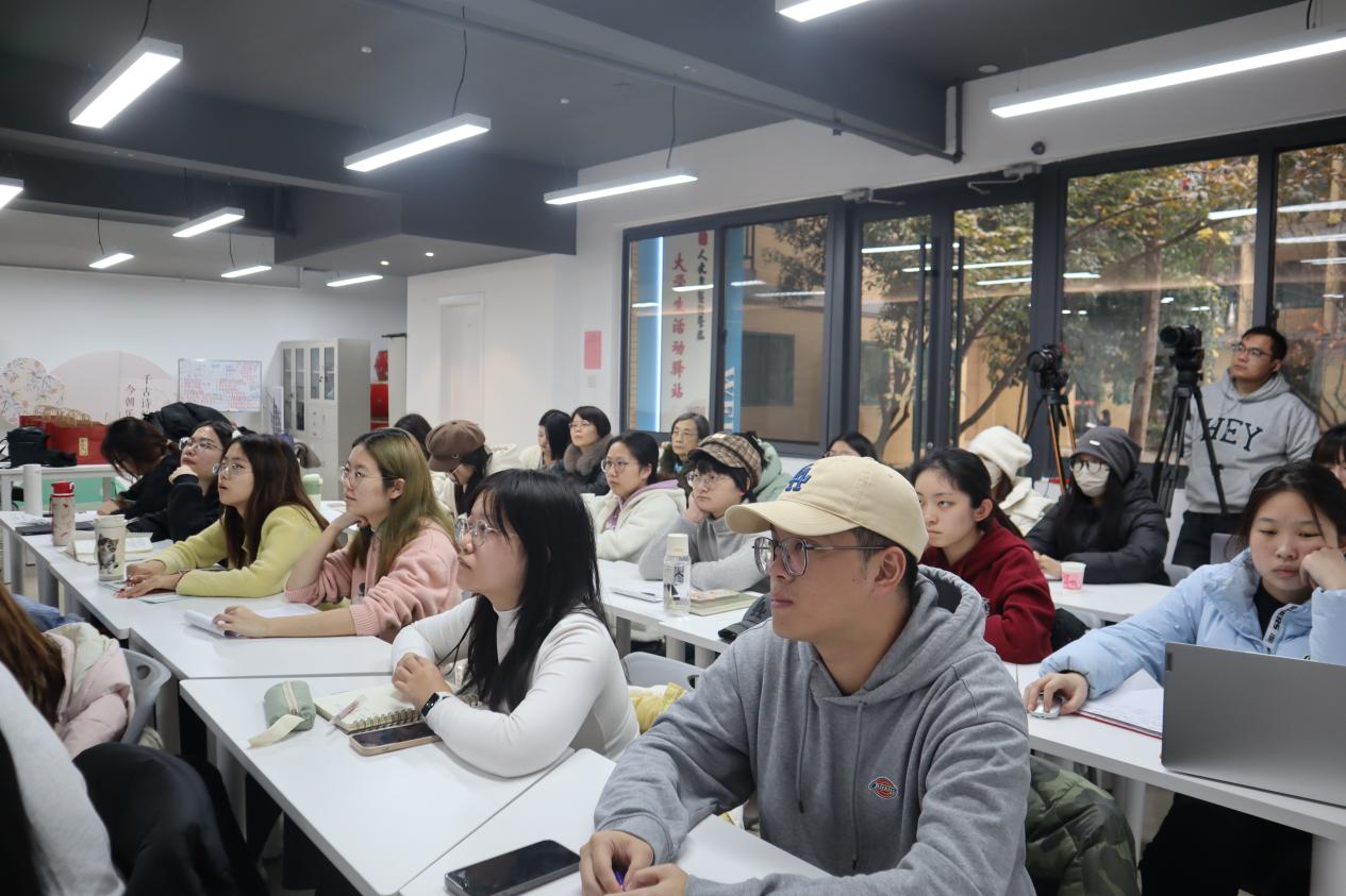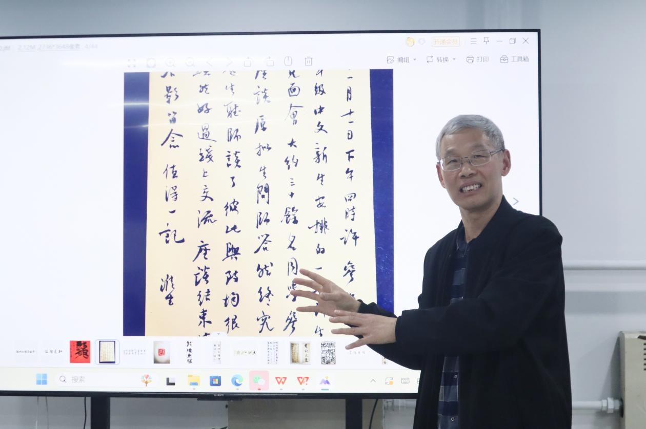 中文系教授高淮生受学校关工委邀请在竹苑1号楼大学生活动驿站作“游于艺——墨趣文心,心有所寄”主题讲座。学校关工委秘书长郭太敏和部分学生参加活动。