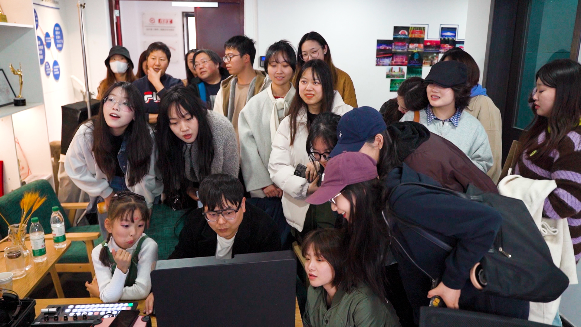 新闻传播系师生集体参观了智能影像工作站。马奎介绍了智能影像工作站的各类功能,如实时效果预览、海量可定制模板、蓝牙拍摄提升效率、多系统直播支持等。同学们观看了智能影像工作站的样片和作品,详细了解了智能影像工作站的运作过程和效益产出,并亲身体验了工作站的拍摄和制作全流程。老师和同学们就成本控制、导播实践等问题与工作人员进行了深入交流。