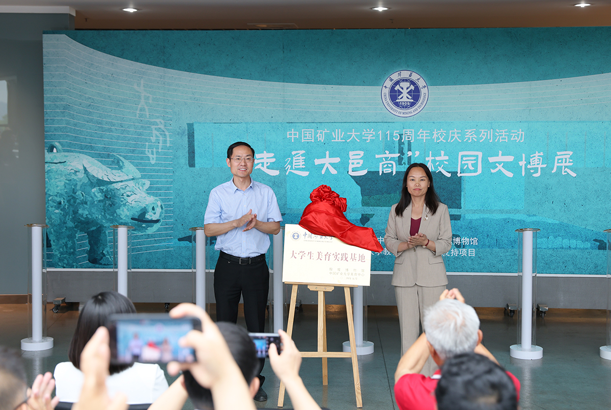 仪式上还举行了中国矿业大学殷墟博物馆“大学生美育实践基地”揭牌仪式。李江涛与赵清荣共同为实践基地揭牌。